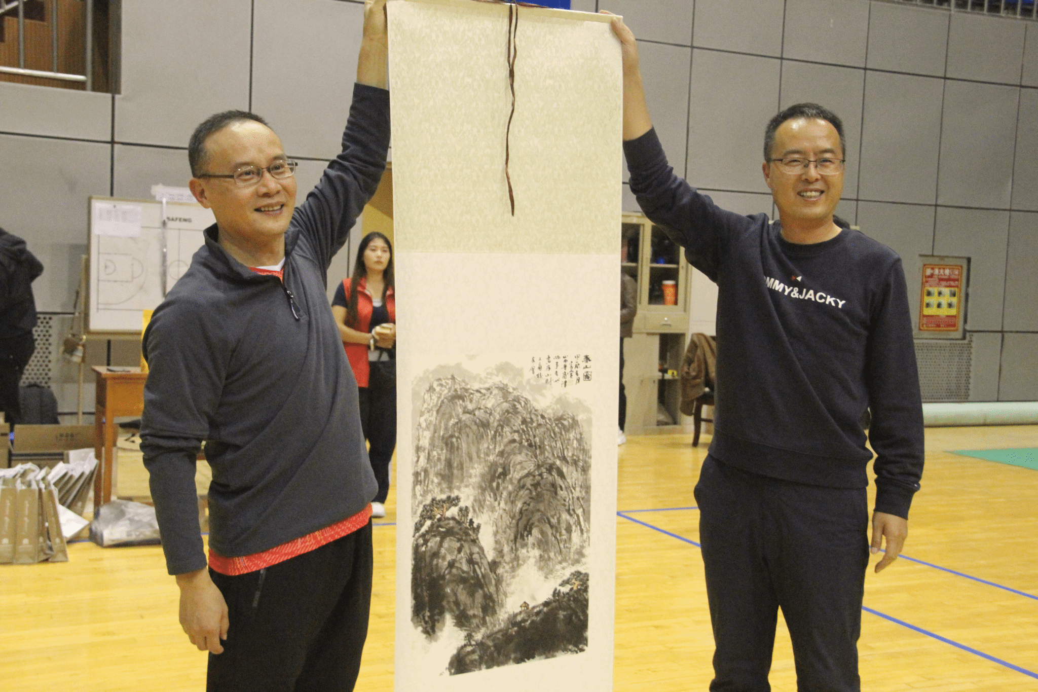 颁奖环节中,学院党委书记李群生为山西晋商律师事务所主任张青政赠送书画,以表对冠名支持的诚挚谢意。随后,张青政主任、李群生书记、原沁波副会长、学院工会主席闫向连及万马公司行政副总裁郭凯共同为获奖队员颁奖,见证荣耀时刻。
