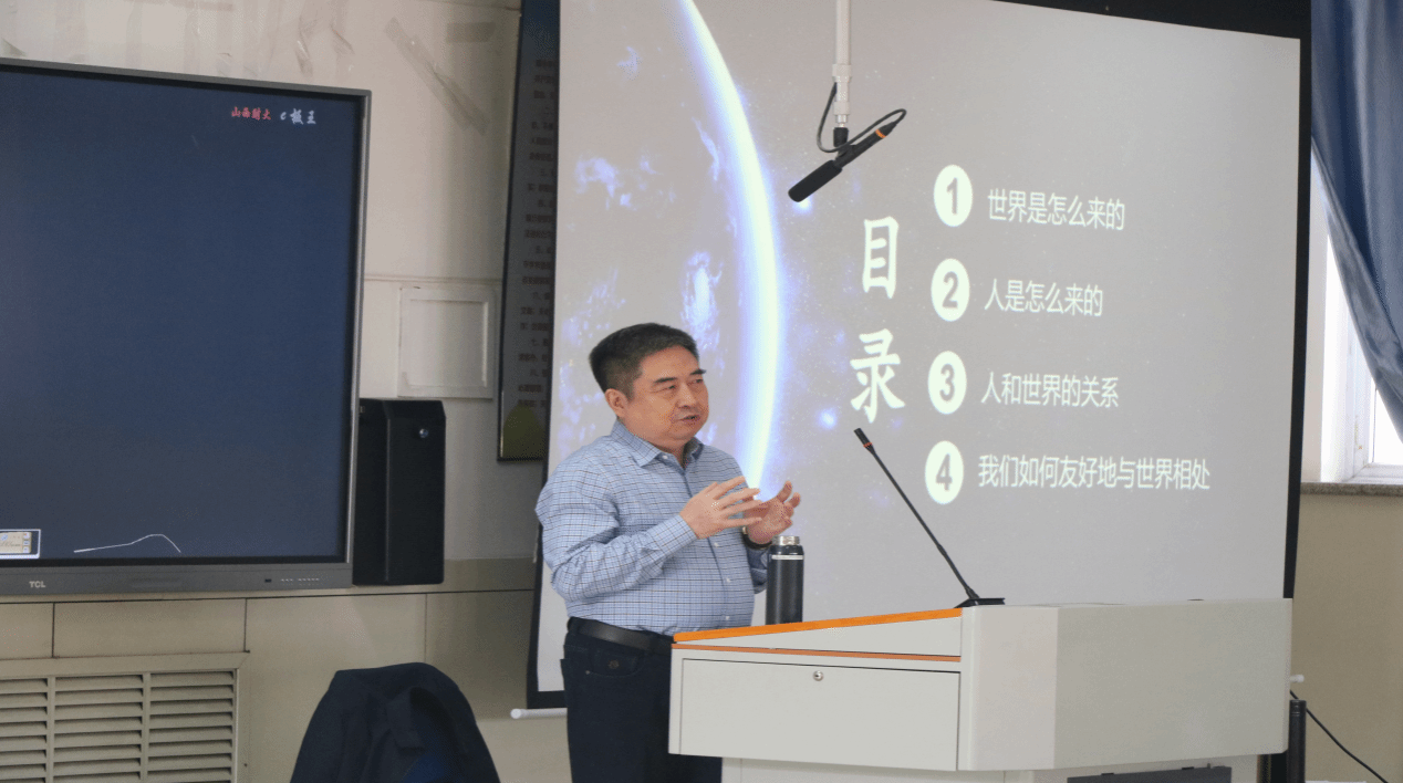 讲座中,崔志宏先生以“窗外——更大的世界”为题,从宇宙起源、人类演化切入,引导学生思考人与世界的关系。崔志宏先生首先讲述了奇点假说与《道德经》的相关内容,使同学们了解了世界的起源。接着,他通过人类进化图谱,向同学们揭示了人类的由来。随后,讲座核心转入“人与世界的关系”。崔志宏先生提出,我们生活在物质、精神、社会与数字交织的多维世界中,并与之建立起认知、审美、实践与伦理四重关系。最后,讲座落脚于“如何与世界友好相处”。崔志宏先生强调,相处之道在于“对话”与“共创”,而非征服或顺从。通过分析如何与世界相处、如何与人相处、如何理解三观并建立良好的三观、如何提升自我,引导学生尊重自我节奏,通过读书、实践、内省、归纳、总结提高认识世界的方法,在理解世界多元面貌的基础上,完成自我意义的构建与独特表达。