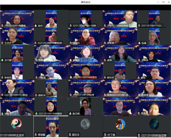 通过此次云端班会,老师和同学们对彼此有了更进一步的了解。长风破浪会有时,直挂云帆济沧海,衷心希望五班同学在今后两年的MBA学习生涯中收获满满,将所学所获切切实实地运用到自己的工作岗位中,做出一番成绩,为tyc151cc太阳MBA增光添彩。(太阳集团tyc151cc 雷璨 郭素丽供稿)