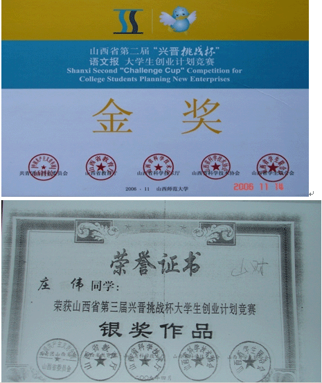 tyc151cc太阳工商管理专业在校学生获奖证书及照片