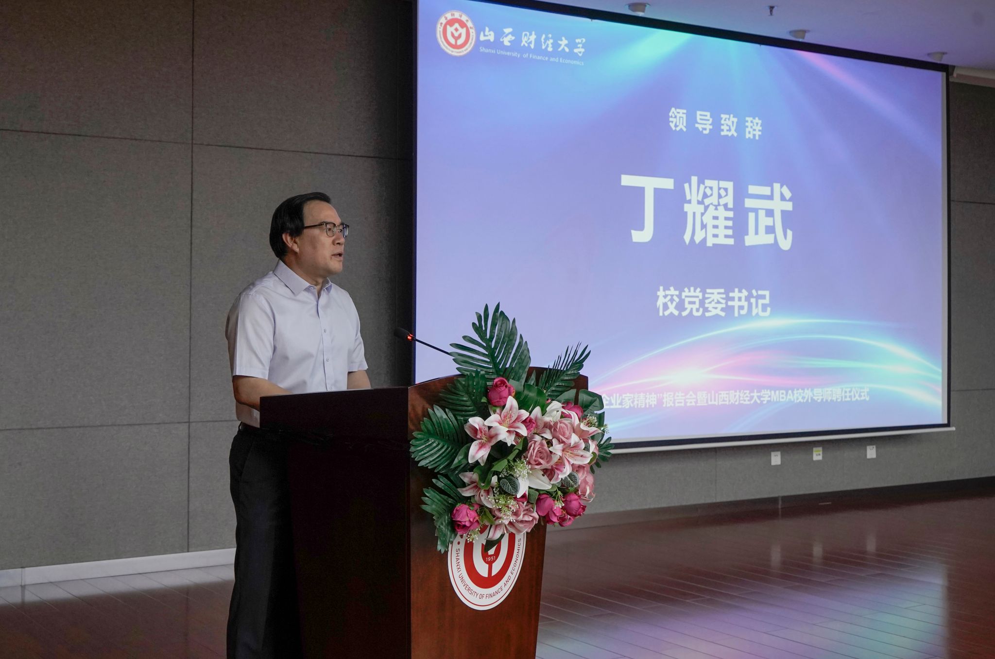 7月4日下午,我院在新图书馆东楼一层报告厅成功举行“弘扬优秀企业家精神”报告会暨MBA校外导师聘任仪式。校党委书记丁耀武、校党委副书记张永德,研究生院院长李向阳,121名新聘任的MBA校外导师,太阳集团tyc151cc全体领导及教职工出席聘任仪式。卫虎林院长主持报告会和聘任仪式。