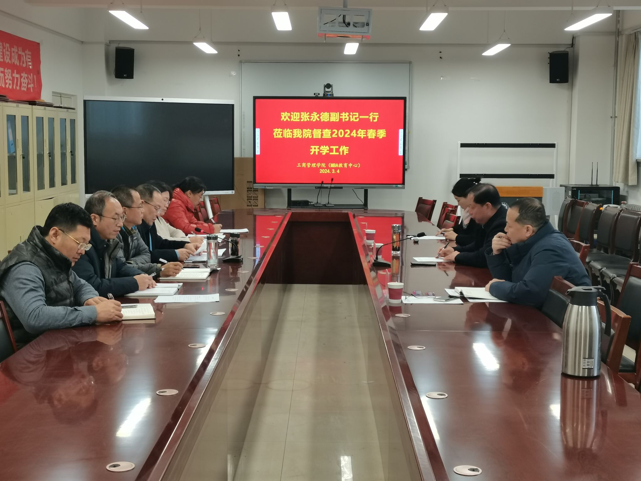 根据学校2024年春季学期开学督导工作总体安排,3月4日上午,由校党委副书记张永德带队的第四督查组莅临我院,就本学期开学各项工作进行督查指导。学院领导班子全体成员、科级干部、工会主席、各教研室主任、办公室、MBA教育中心工作人员等参加会议。