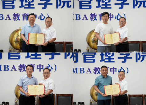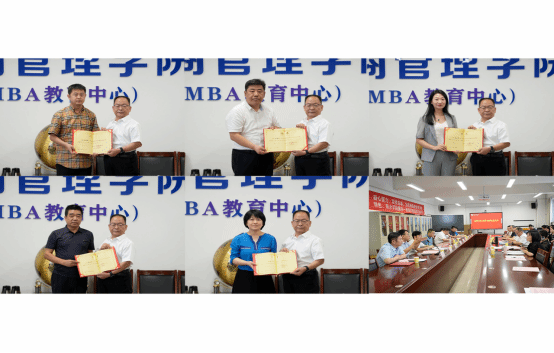 第二阶段为MBA校外导师聘任与交流。周志刚副书记宣读学院决定,聘请山西慧源人力资源集团有限公司董事长朱殿智等10人为我校MBA校外导师,聘期三年。卫虎林院长为新增MBA校外导师颁发聘书。新增MBA校外导师在发言交流中表示,将严格按照学院要求,发挥各自优势,深入推进产教融合,为推动我校MBA高质量发展做出新的贡献。