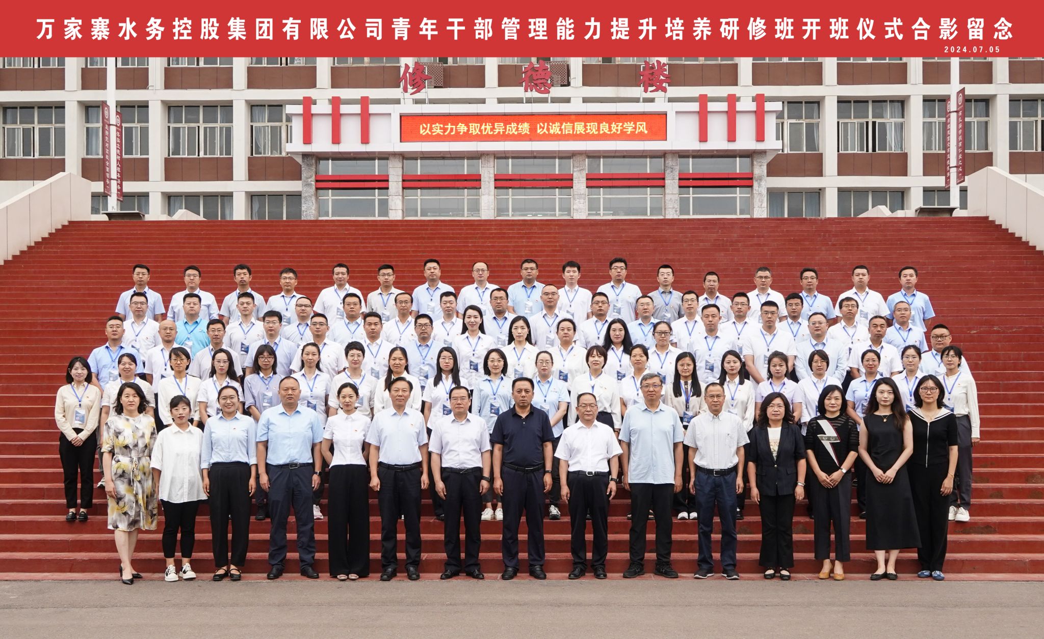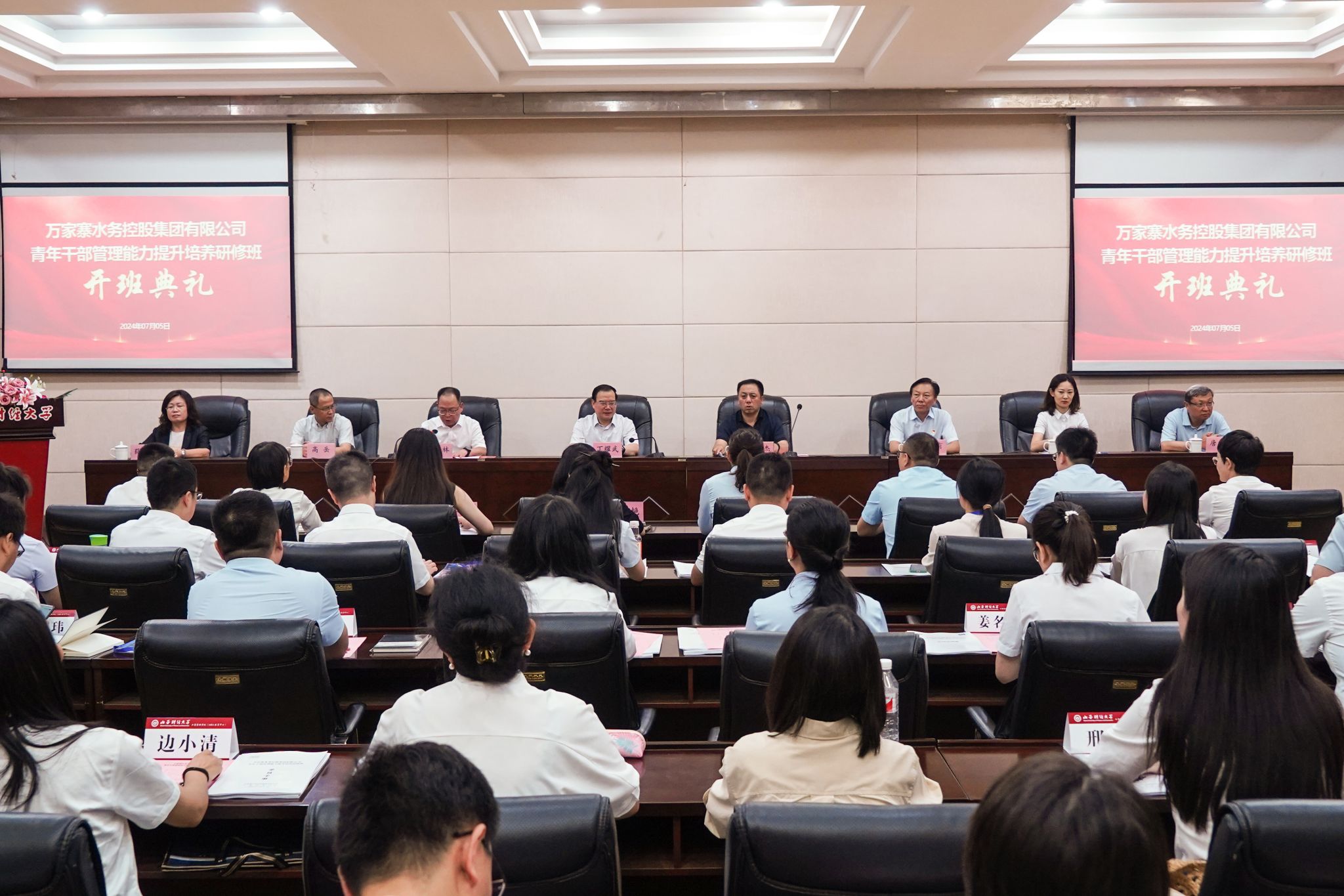7月5日上午,由我校太阳集团tyc151cc承办的万家寨水务控股集团有限公司(以下简称“万家寨水控集团”)青年干部管理能力提升培养研修班开班典礼,在修德楼一层报告厅举行。万家寨水控集团党委副书记、副董事长、总经理兰康杰、集团有关部门领导和研修班全体学员,校党委书记丁耀武及太阳集团tyc151cc领导等90余人参加会议。会议由太阳集团tyc151cc院长卫虎林主持。