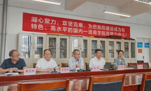 会上,学院院长卫虎林对新入学的6名博士生和36名学术硕士研究生表示热烈欢迎,并从三个方面与同学们进行了分享。他首先从近期网络爆火的国产3A游戏《黑神话:悟空》里36个场景中有27处来自山西出发,对垣曲“世纪曙猿”、芮城“西侯度圣火”、“陶寺遗址”和“5000年文明看山西”作了深入讲解;对中央赋予山西全国惟一的全省域资源型经济转型省份,全国惟一的能源革命综合改革试验区进行了分析;对明清晋商纵横欧亚九千里、称雄商界五百年以及首创票号、立号规,创造了汇通天下的奇迹等做了介绍。特别要求同学们要把习近平总书记视察山西时所概括的“诚实守信、开拓进取、和衷共济、务实经营、经世济民”的晋商精神贯穿于自己的学习生活中。在此基础上,对学院的发展历史、师资力量、学科现状、专业建设等作了全面介绍,并就如何贯彻“扎根三晋大地,创新应用研究,培养具有晋商精神的卓越管理人才”的办学使命作了重点讲解。