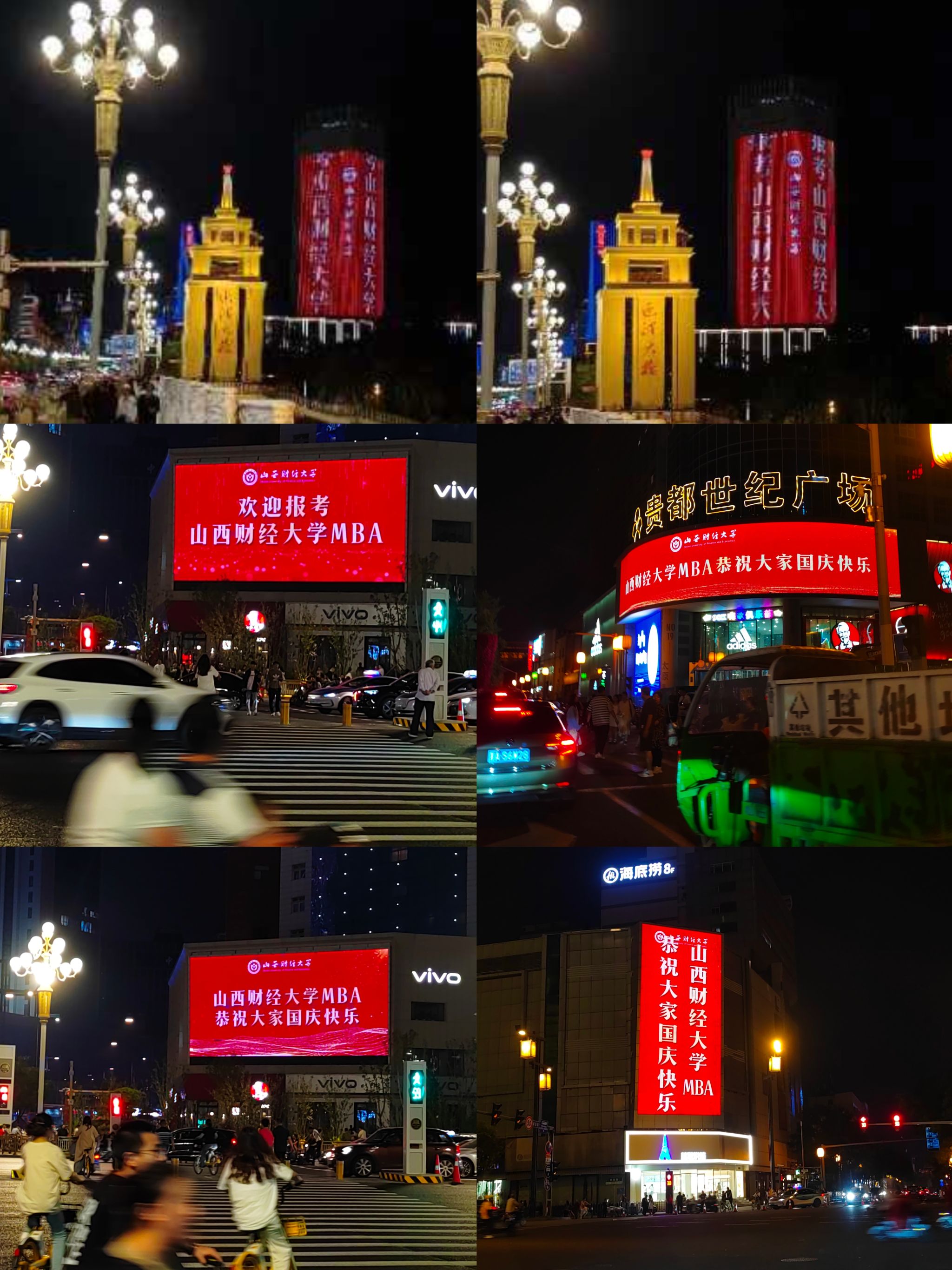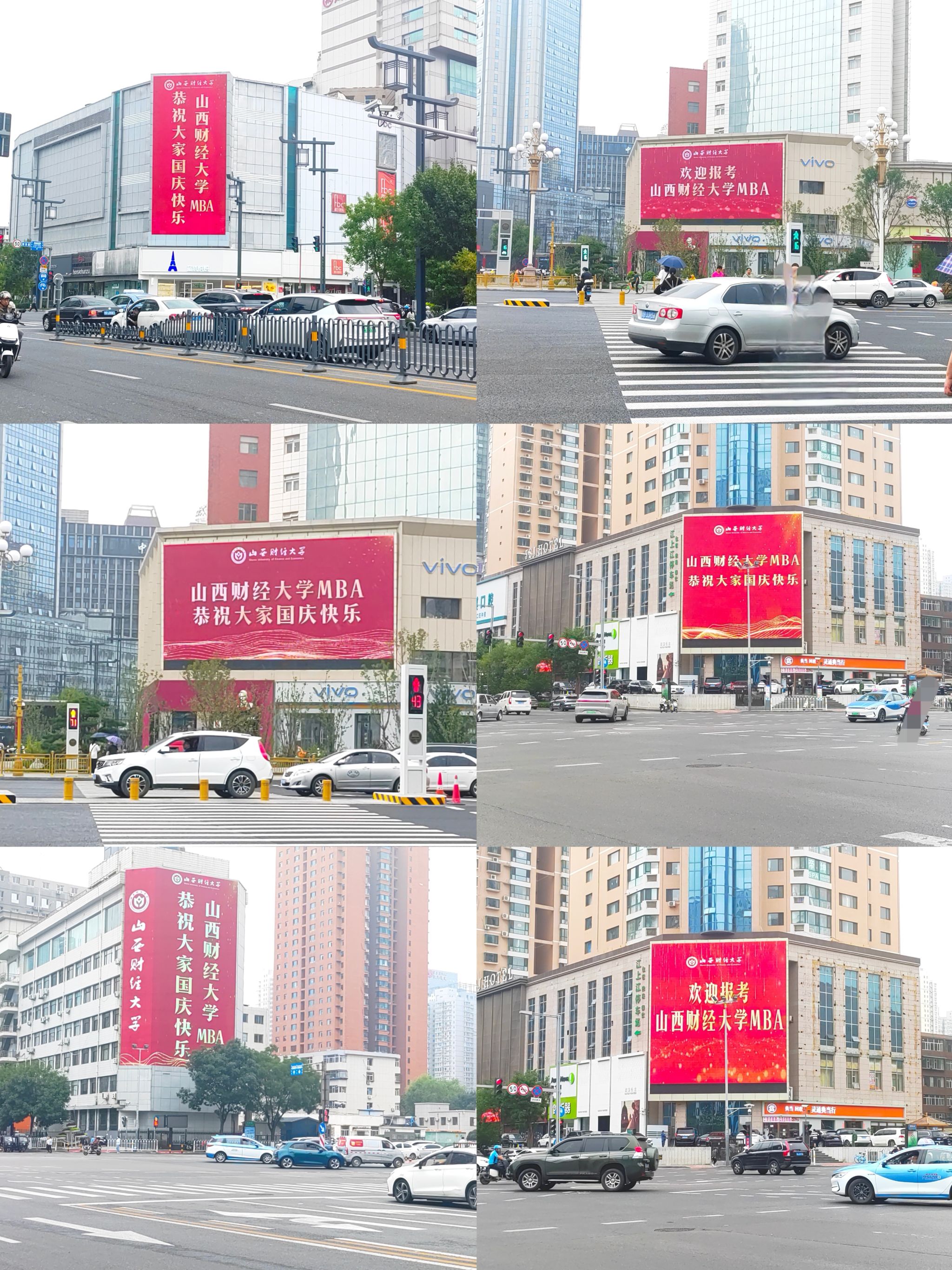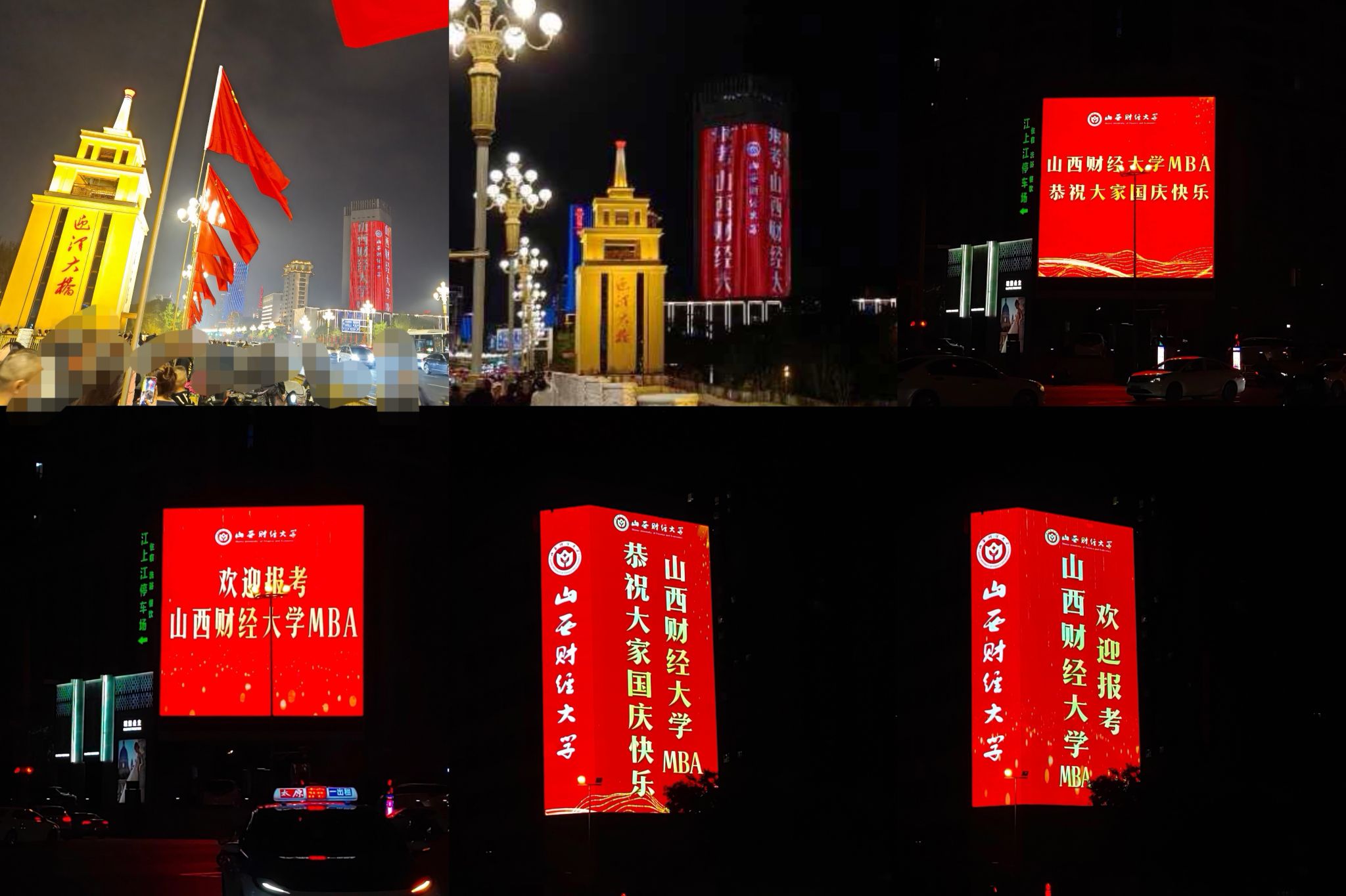 9月22日,恰逢2024太原马拉松赛正式举行的日子。在太原市的三晋第一屏/迎泽大街大南门LED大屏、三晋地标屏/山西省委对面国际大厦“凯旋柱月光”大屏、太原第一商业街/柳巷贵都LED大屏、城南第一屏/亲贤街王府井百货对面LED大屏、开化寺商圈第一屏/开化寺屏等6处省城地标户外大屏上,“tyc151cc太阳MBA恭祝大家国庆快乐”、“欢迎报考tyc151cc太阳MBA”的祝福与问候滚动播出,在国庆即将到来之际,靓丽的“财大红”将再次闪耀龙城夜空。