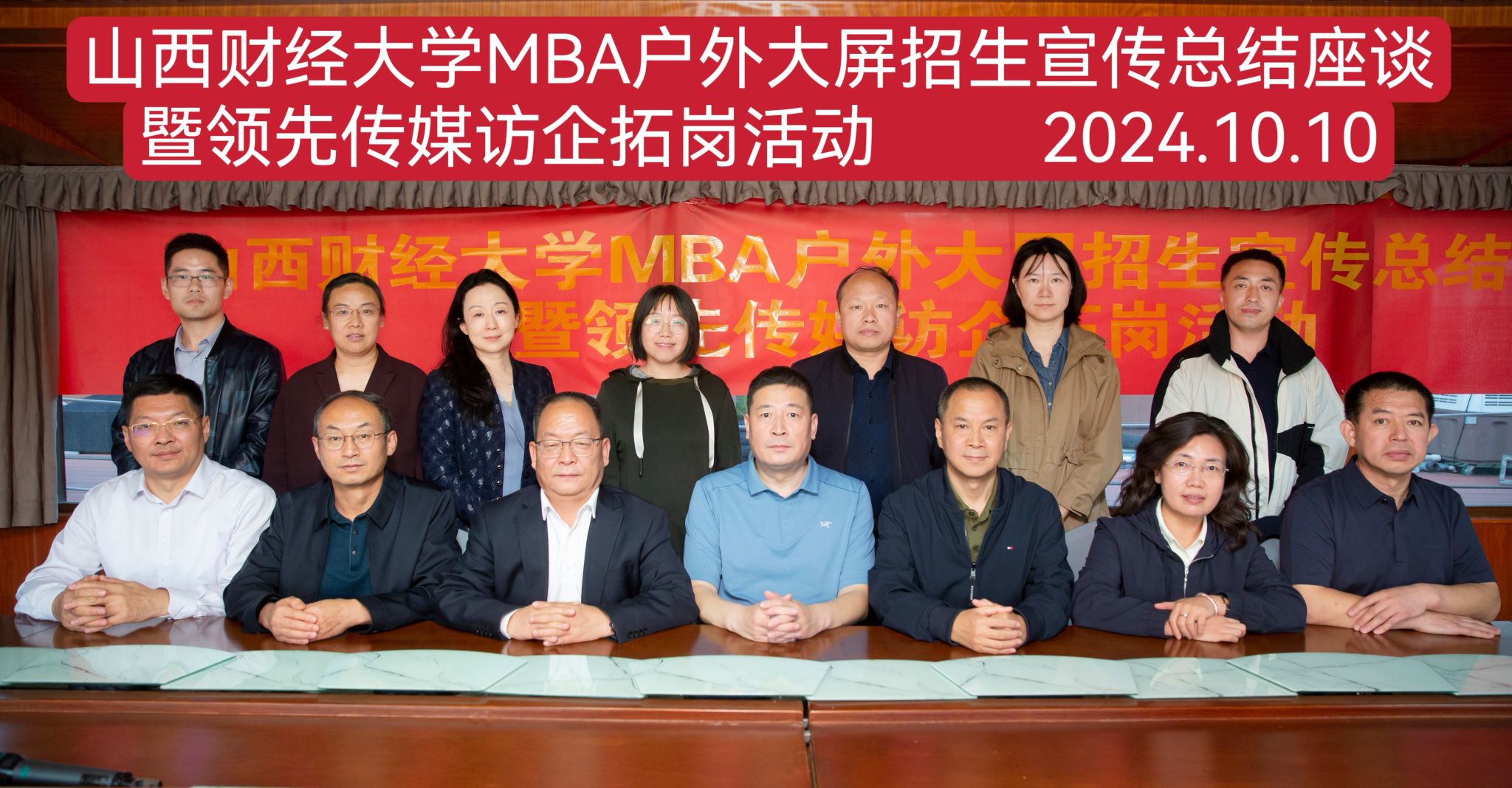 10月10日下午,我院领导班子带队赴山西领先云天文化传媒有限责任公司(以下简称“领先传媒”),就2022-2024MBA户外大屏招生宣传进行总结座谈并举行访企拓岗活动。学院领导班子成员、办公室主任、院工会主席、分团委书记、各教研室负责人、MBA校友会会长等参加活动。会议由卫虎林院长主持。