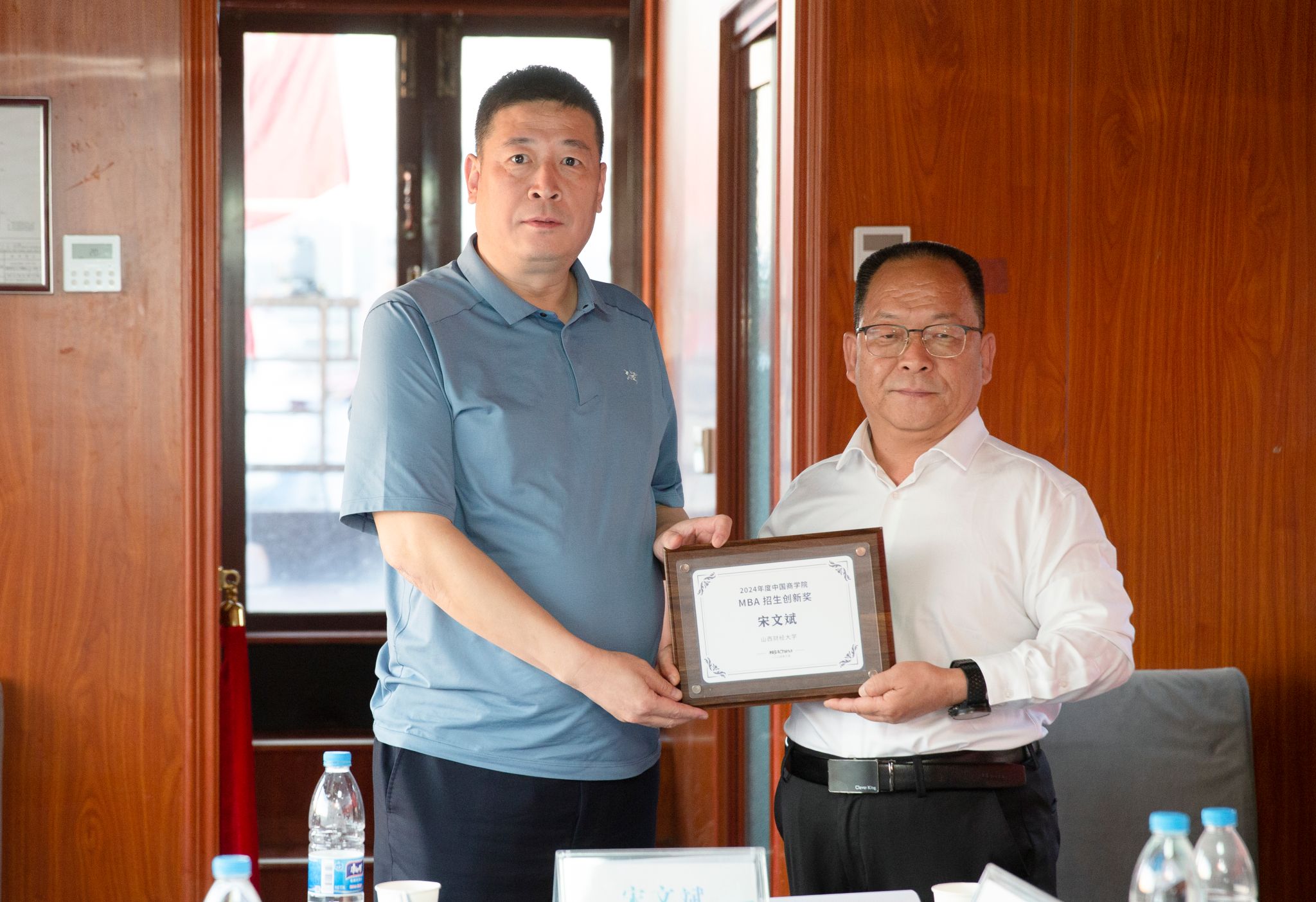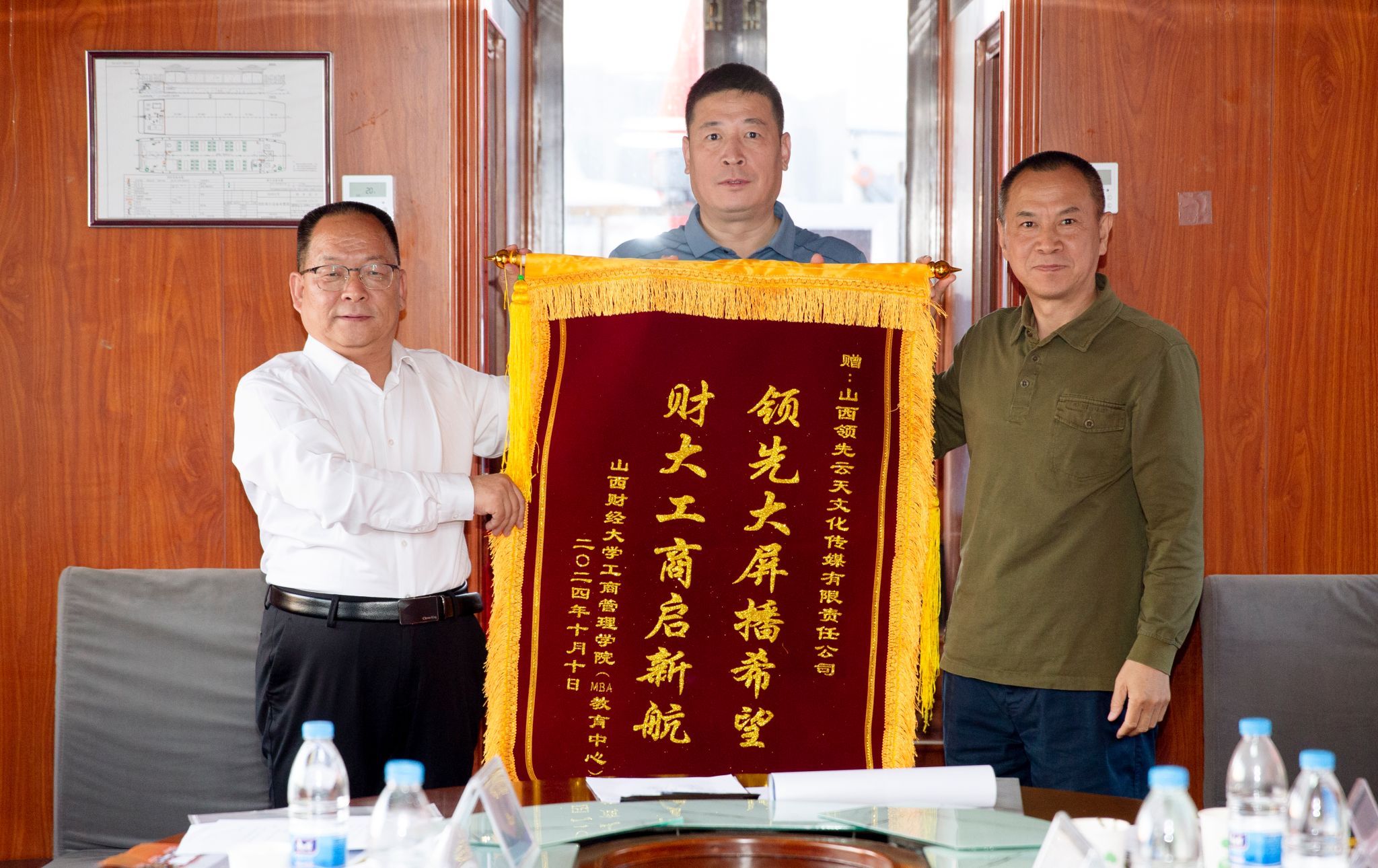 会上,卫虎林为领先传媒总经理宋文斌颁发了第十三届中国商学院招生经验分享暨培养创新论坛授予的“2024年度中国商学院MBA招生创新奖”;党委书记高岳与卫虎林院长共同为领先传媒赠送了“领先传媒播希望,财大工商启新航”的锦旗。(太阳集团tyc151cc 周晔供稿)