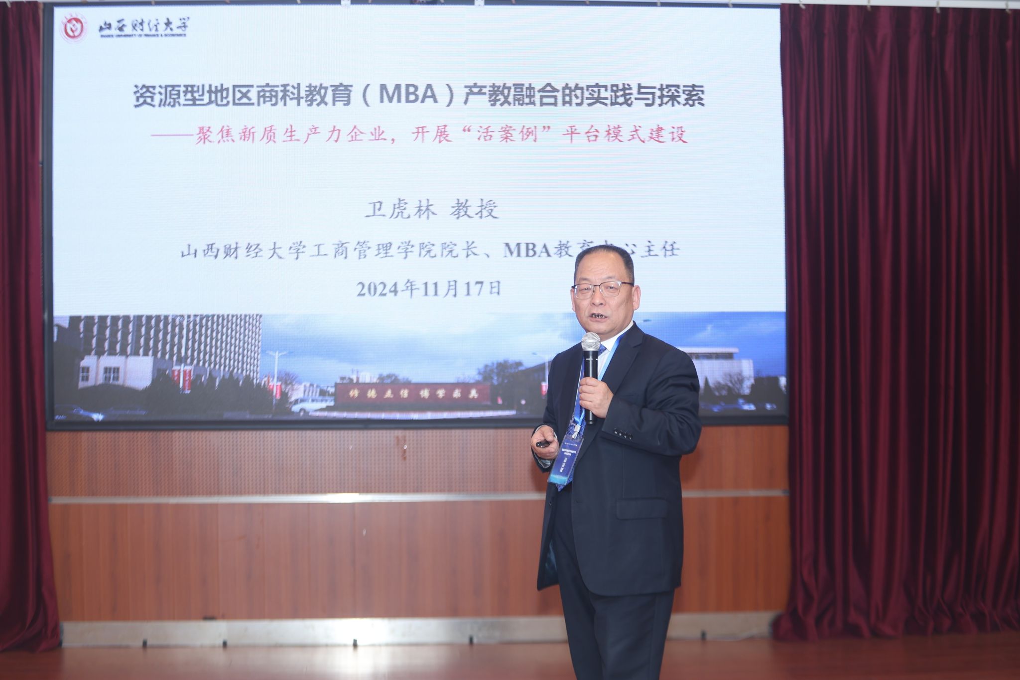 卫虎林从产教融合赋能商科教育入手,强调作为一所高水平研究应用型大学,我校MBA项目以弘扬晋商精神为己任,紧密结合山西资源型经济转型实践,以“扎根三晋大地,创新应用研究,培养具有晋商精神的卓越管理人才”为使命,致力于成为引领资源型经济转型发展的一流商学院。卫虎林详细阐述了我校MBA产教融合的特色与实践。他指出,学院聚焦新质生产力企业,开展“活案例”平台模式建设,探索总结形成了包括案例教学、案例竞赛、案例开发、案例研究和案例服务的“五位一体”案例平台模式。通过几年的实践探索,获得了优质的教学资源;实现了科学研究成果向教学资源的转化,提升了课程的“高阶性、创新性和挑战度”;同时提升了专任教师的教学能力和科研水平;增强了学生对管理实践的认知,提升了学生创新创业能力,促进了学生的全面发展。