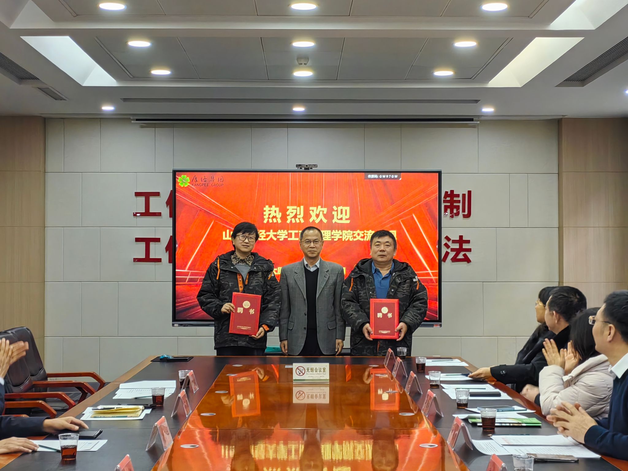 在集团总部,双方举行了交流座谈会。公司人力资源总监李志英介绍了企业基本情况、完成项目、获得荣誉以及员工福利等内容。我院齐永智副院长着重围绕“学院能为企业做什么、企业能为学院做什么、双方一起能做什么”进行详细说明。此外,齐永智副院长还对“康培”二字进行详细解读,强调企业培养绿色作物与学校培养人才在本质上的关联性。学院党委高岳书记对双方就高管进课堂、合作案例开发、学生实习就业的合作意向表示充分肯定,并为康培集团李志英、薛东升两位高管颁发校外本科实践导师证书。