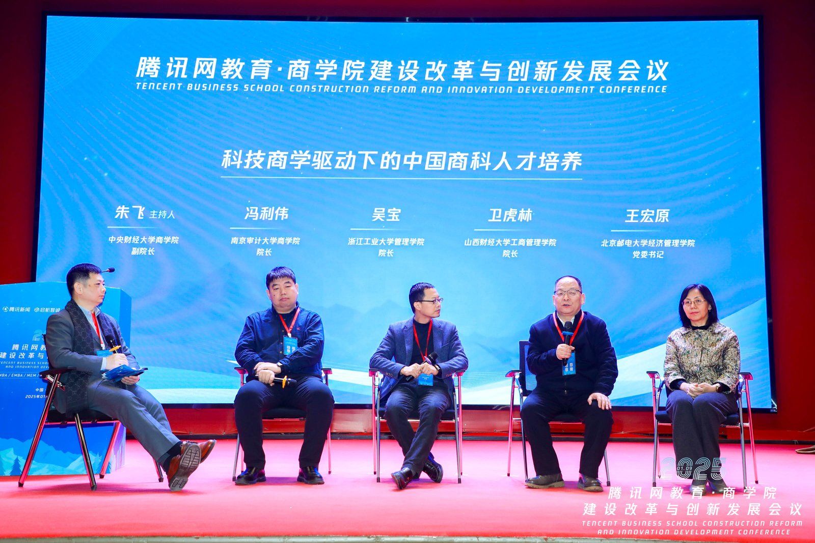 在备受关注的圆桌对话环节,卫虎林院长参与了第一场讨论,该场对话由中央财经大学商学院副院长朱飞主持,与南京审计大学商学院院长冯利伟、浙江工业大学管理学院院长吴宝、北京邮电大学经济管理学院党委书记王宏原等一同聚焦“科技商学驱动下的中国商科人才培养”话题。卫虎林院长结合tyc151cc太阳MBA教育的丰富经验展开分享。