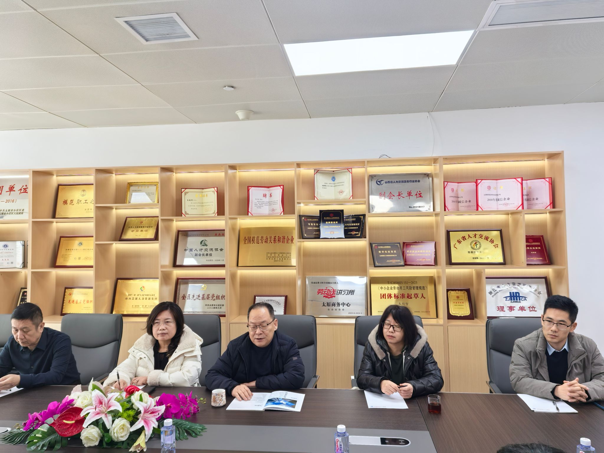 2月5日农历蛇年上班的第一天,国务院参事室特约研究员、中国劳动学会会长、原国家人社部党组副书记、副部长、原山西省副省长、甘肃省副省长杨志明,在我院实践基地山西慧源人力资源集团会议室会见了学院院长卫虎林、副院长薛继东及教师代表张征、周晔,就“数智赋能人力资源高质量发展”这一主题开展座谈交流。山西省文化和旅游厅原巡视员李荣钢、山西省人力资源和社会保障厅人力资源流动管理处处长王小园、太原市小店区副区长郭利河、山西慧源人力资源集团董事长朱殿智等参加座谈交流。