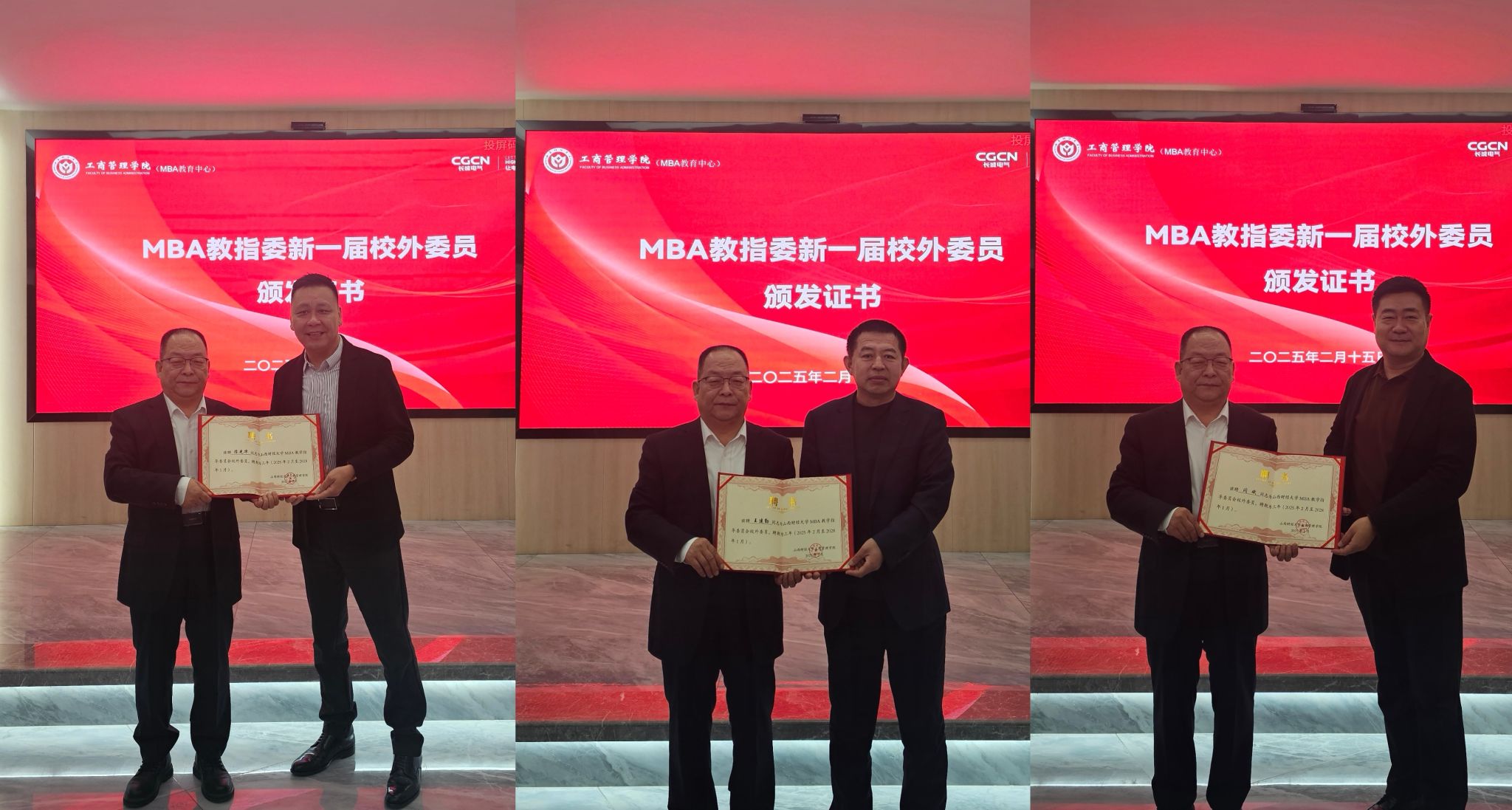 2月15日上午,我院在校外人才培养基地长城电气股份有限公司举办“人工智能赋能企业发展暨2025校友企业家新春座谈会”,学院领导班子全体成员、MBA教指委校外专家、各教研室主任等参加会议。会议由薛继东副院长主持。