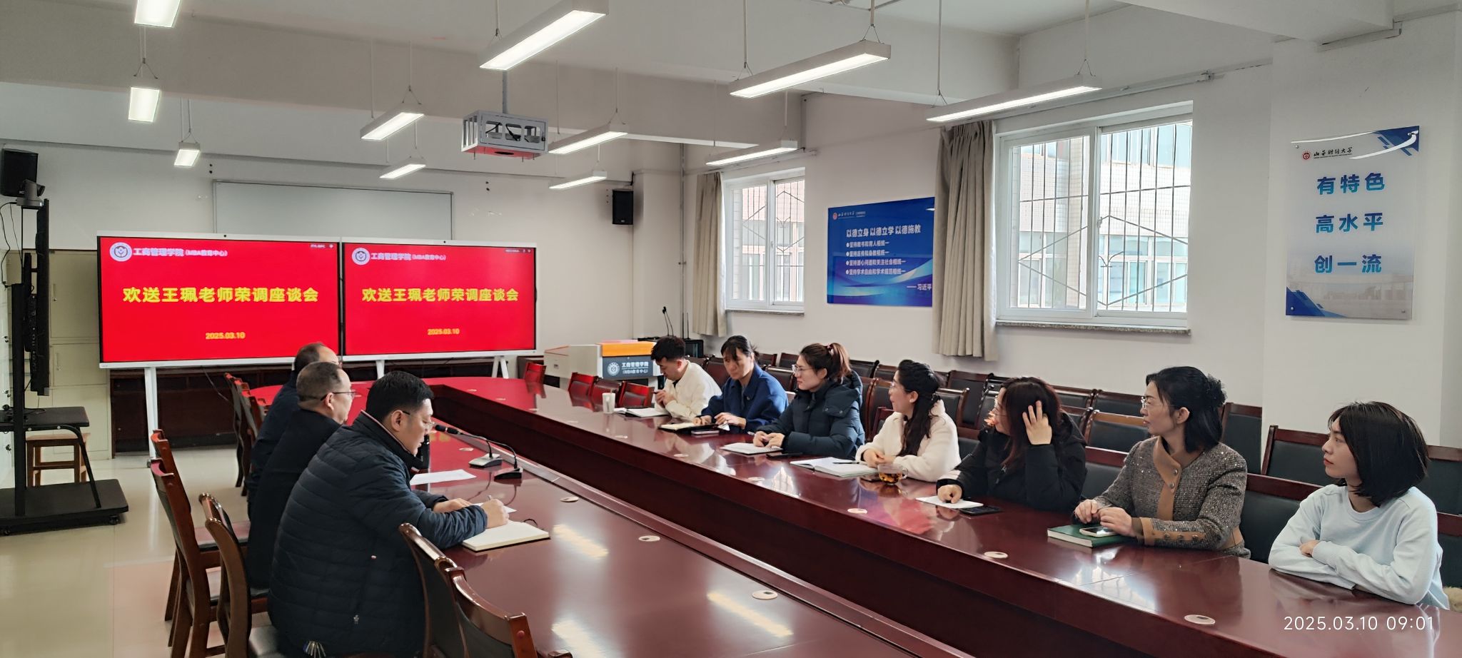 3月10日上午,我院在会议室举行欢送王珮老师荣调座谈会。学院全体领导、办公室主任、全体辅导员参加了座谈会,会议由学院党委副书记周志刚主持。