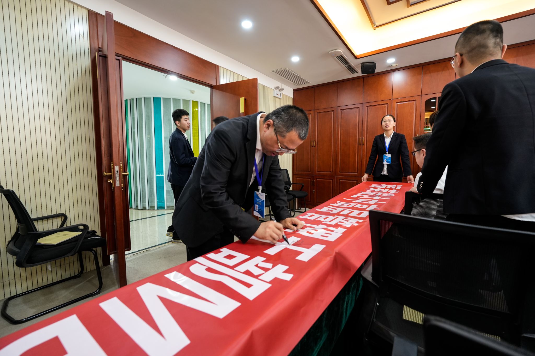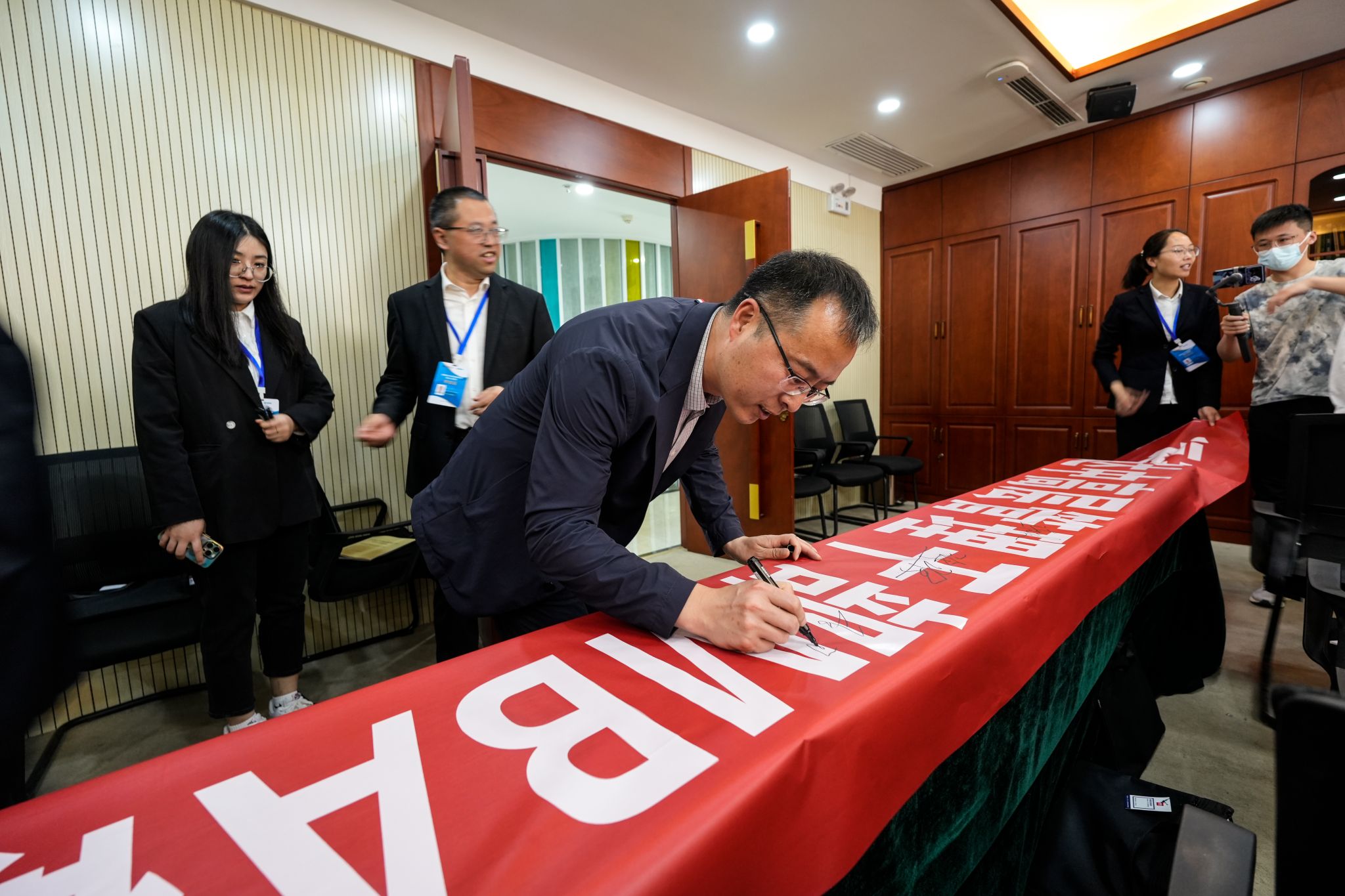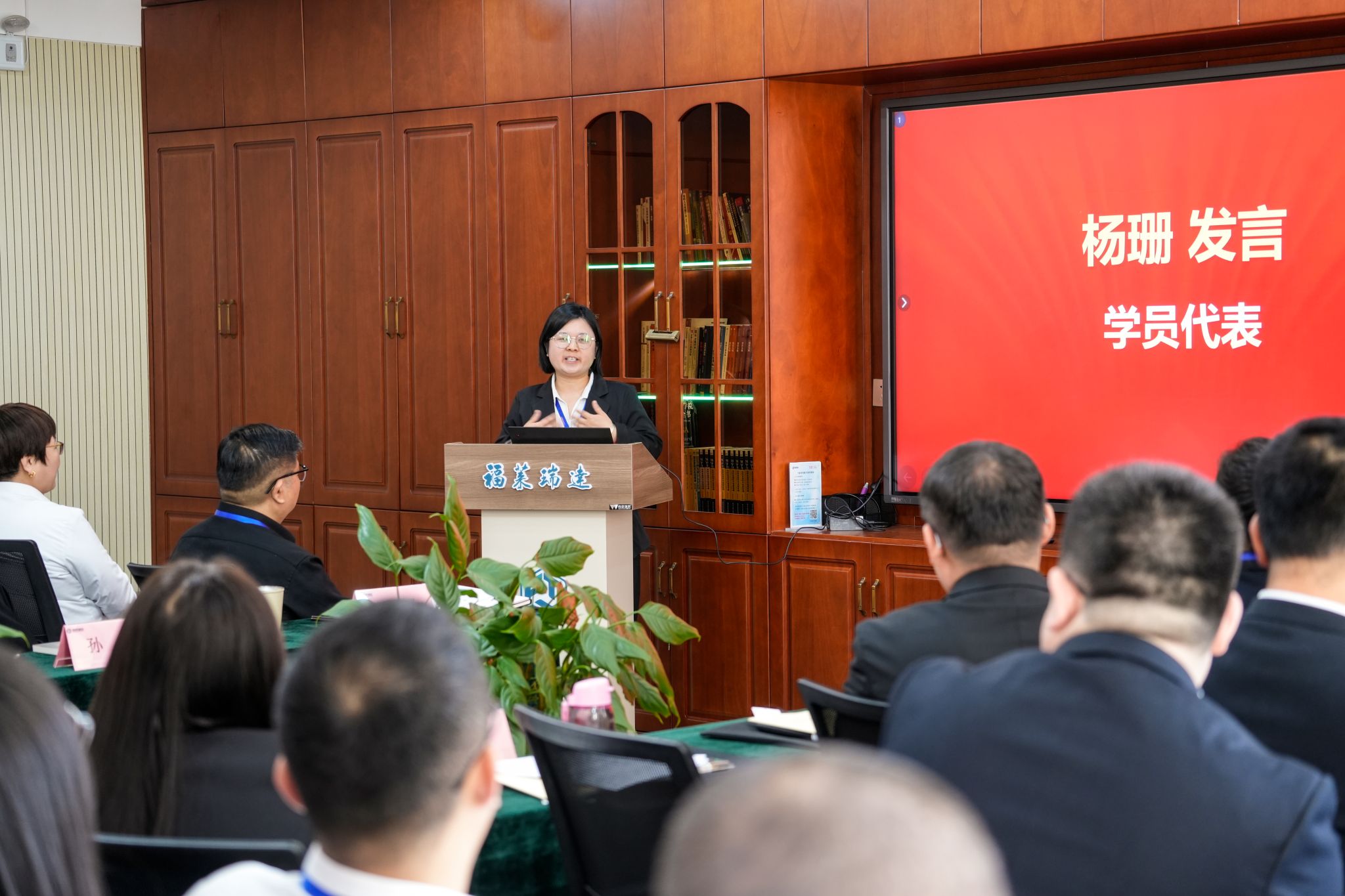会上,我院管理原理教研室主任张莉艳对研修班的总体设计和培养要求作了全面介绍;学员代表、公司副总经理杨珊代表全体学员作表态发言,表示将全身心投入到这次学习中,将所学转化为推动企业创新发展的动能;最后,双方领导,研修班学员在横幅署名,并进行合影留念。