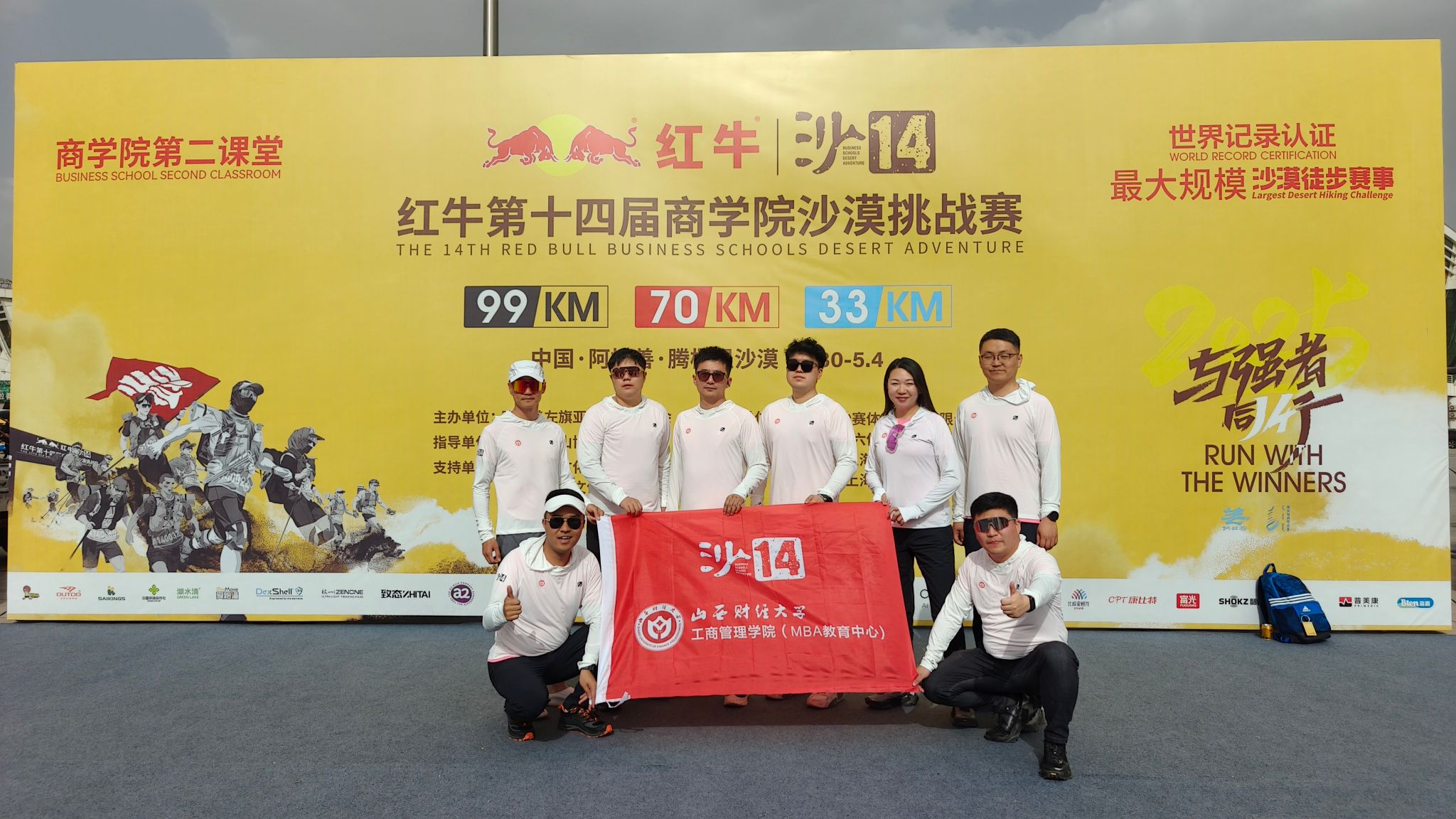 参访结束后,学院为首次出征亚沙赛的8名队员举办座谈会。作为学院历史上首次组队出征亚沙赛的队伍,我院八名参赛队员全部安全完赛,并获得院校级荣誉“初征驼铃奖”。2018级MBA学员马强获得C队男子组第二名,马强、徐强、郭杰、武岐、赵佳5人获得“金沙漏奖”。