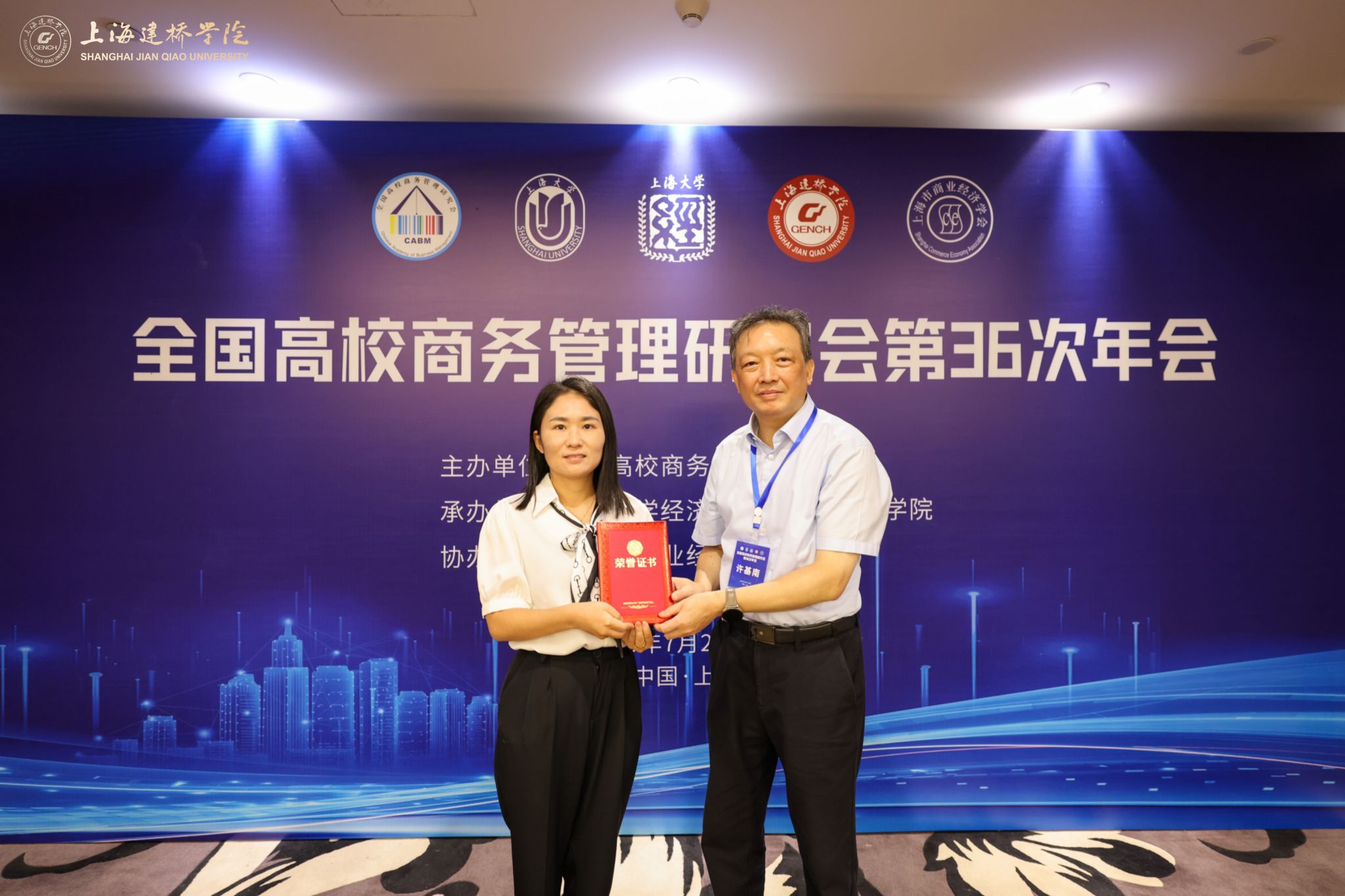 7月27日至28日,全国高校商务管理研究会第36次年会在上海市举行。会议由上海大学经济学院与上海建桥学院联合承办,来自全国26所高校的相关专家学者参加会议。本届年会以“数字经济与商务管理变革”为主题,聚焦商务管理领域的前沿动态,交流研究成果、共探发展新路径。全国高校商务管理研究会副会长、我院院长卫虎林带队、物流管理教研室郭金花老师以及4名在读博士和硕士研究生等一行6人应邀参加了会议。