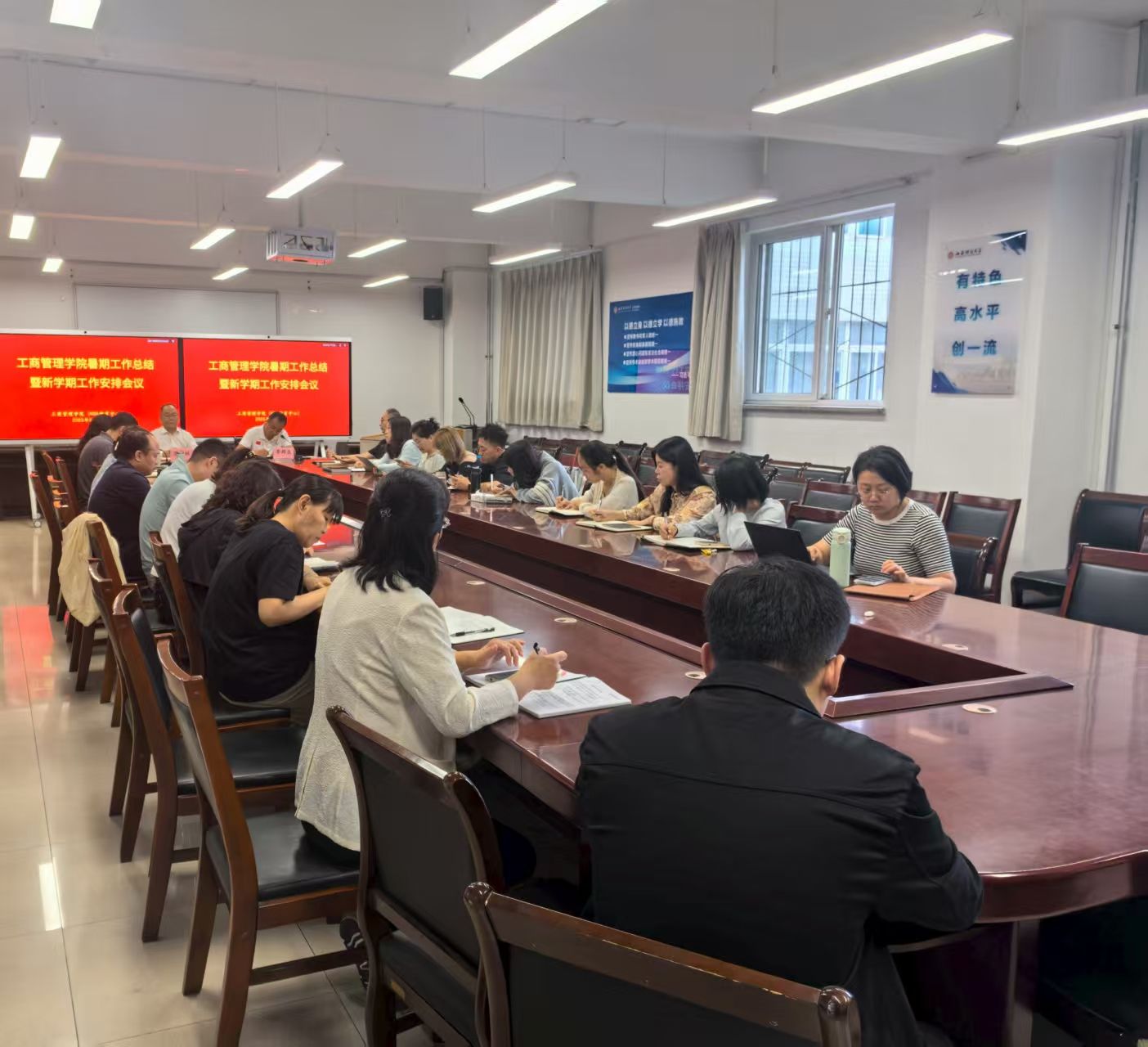 卫虎林指出,暑假期间,根据学校统一部署,学院开展了资源型经济转型高质量发展“活力样本”调研行、民营经济高质量发展“活力样本”调研行等活动;工商管理、市场营销、物流管理、人力资源管理四个本科专业在学院有关领导的带领下,先后前往14家公司开展了调研,按要求完成了“小学期”计划的所有工作。新学期将继续围绕第六轮学科评估指标体系,从提高商科教育竞争力、数智变革、本科生和研究生生源质量、高水平科研、高水平师资队伍和国际化建设、更加精准深入服务山西战略、学院治理效能优化等七个方面,集中优势资源,弥补短板,实现“十四五”规划圆满收官,为在下一轮全国学科评估中取得更优位次奠定坚实基础。