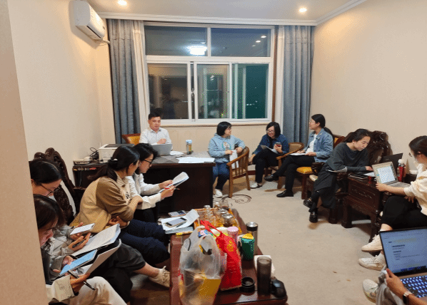 9月18日下午,团队抵达tyc151cc太阳国际学术交流中心。当晚8点,组委会正式发布比赛案例《从丝绸匠人到AI先锋:万事利丝绸数智化协同创新之路》。两支队伍迅速进入备战状态,立即展开资料研读与思路梳理。经过多轮深入讨论和反复推敲案例内容,代表队逐步明确了各自的破题方向并形成了分析框架。