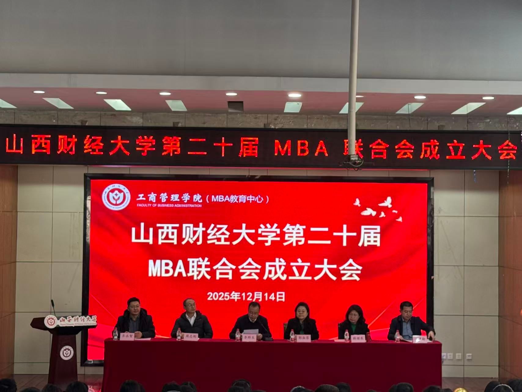 12月14日,我院第二十届MBA联合会成立大会在坞城校区敏行楼301学术报告厅隆重举行。学院领导班子全体成员、MBA教育中心全体工作人员、2025级班主任、MBA校友会会长、第十九届联合会代表、本科生及研究生学生会代表、2025级MBA全体学生等200余人参会,大会由学院党委书记李群生主持。