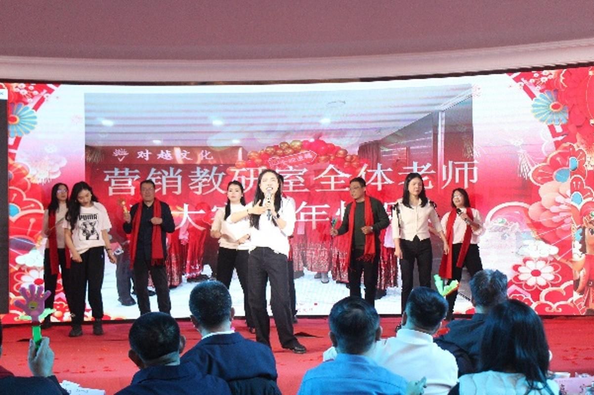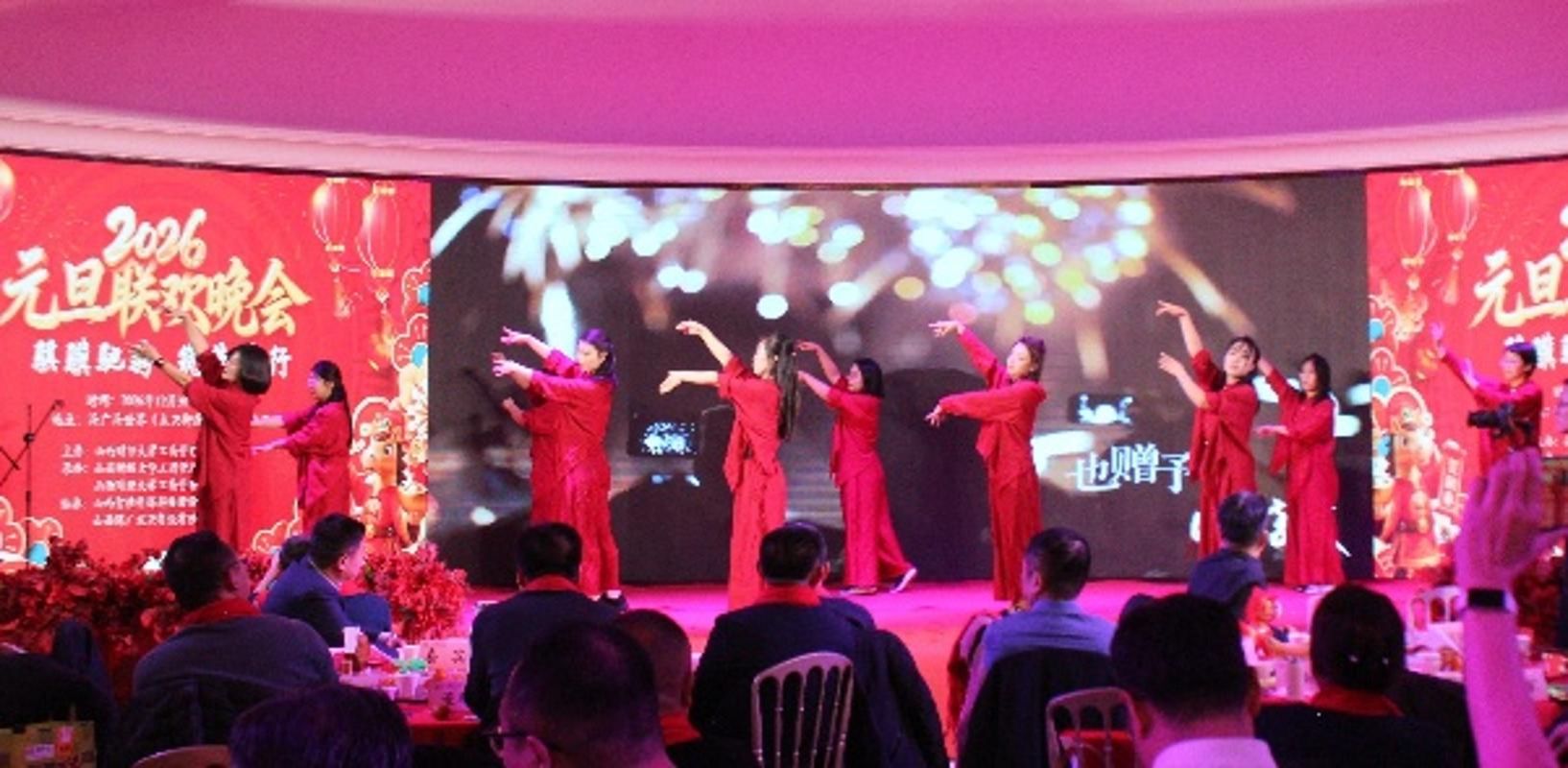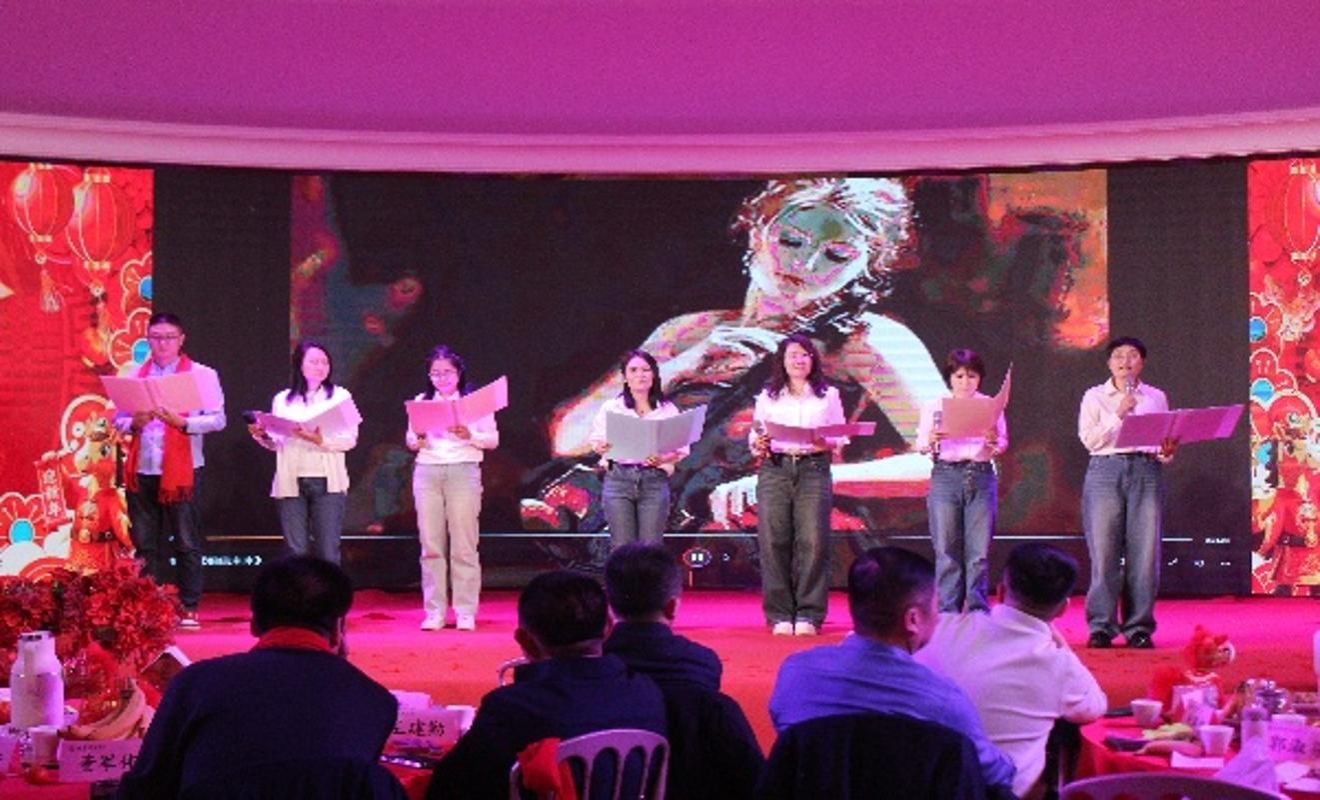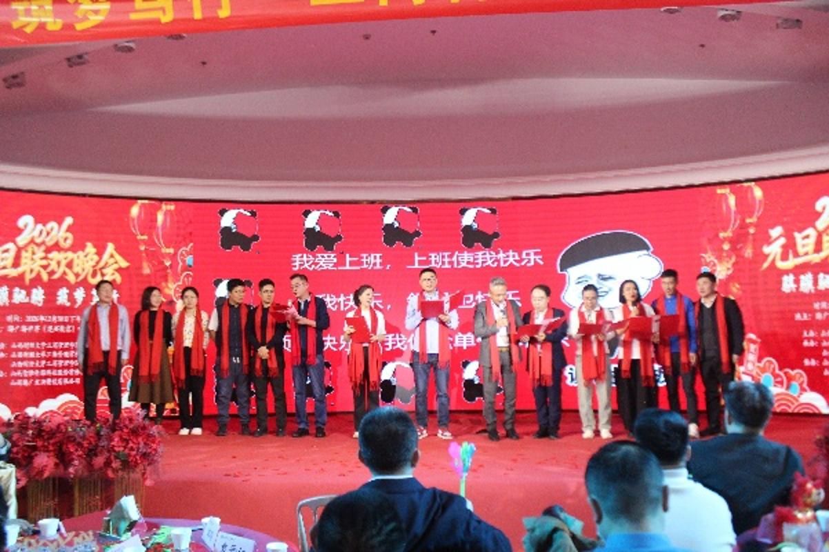 12月30日下午,海广海世界(龙兴街店)四层珍珠厅张灯结彩、共庆新年。我院全体教职工与校友代表、嘉宾欢聚一堂,隆重举办了以“骐骥驰骋,筑梦笃行”为主题的2026年元旦联欢会。原tyc151cc太阳党委常委、副校长杨俊青,tyc151cc太阳工会主席董兆军,tyc151cc太阳就业创业中心主任史成安出席活动,并为师生们带来了亲切问候和新年祝福。