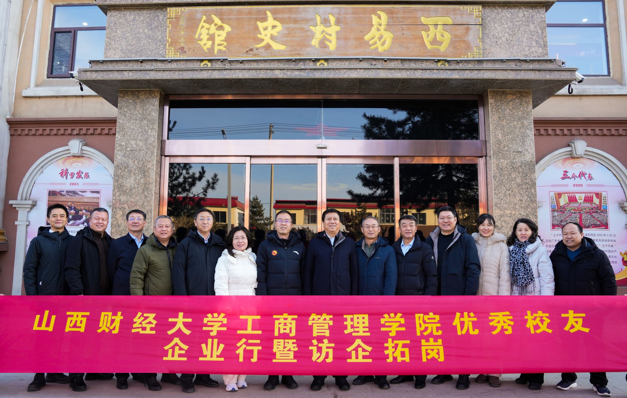 1月22日,学院一行首站抵达西易集团,受到集团董事长、优秀校友苗杰及管理层的热情接待。在苗杰陪同下,先后走访易辰城市中心、易苑小区,参观了购物中心、汉庭酒店、中影星空影城等业态,听取项目发展介绍,亲眼目睹了集团深耕现代服务业的转型成效。在易苑小区,通过参观村史馆等场所,深入了解西易村振兴历程,亲身感受到了党建引领共同富裕的典型经验,为学院教学研究提供了宝贵案例。