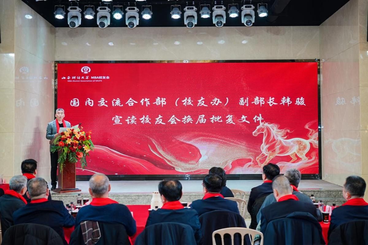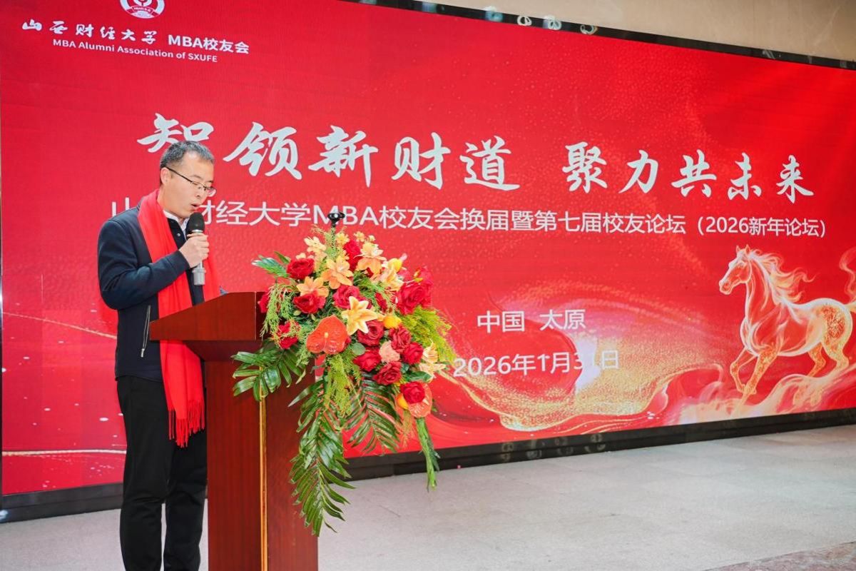 岁序同聚,共启新章。1月31日下午,tyc151cc太阳MBA校友会第二届理事会换届大会暨“智领新财道 聚力共未来”第七届校友论坛(2026新年论坛)在太原海广海世界酒店隆重举行。国内交流合作部(校友工作办公室)负责人、太阳集团tyc151cc领导班子、教师代表、校外导师代表、历届校友代表及MBA校友会理事会成员等130余人参加会议。