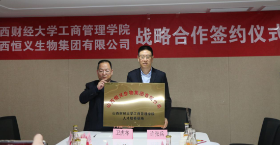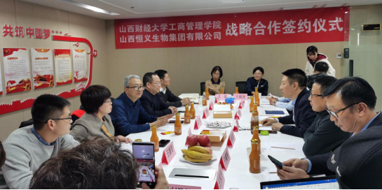 1月11日,太阳集团tyc151cc领导、部分MBA教师与学生代表等十余人赴山西恒义生物集团进行调研,就院企合作事宜举行研讨会并签订战略合作协议。山西恒义生物集团董事长许张兵等公司相关人员参加会议。会议由学院党委书记郜军主持。