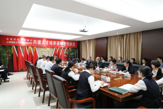 5月14日—15日,在学院党委书记郜军的带领下,学院党委副书记周志刚、副院长薛继东及师生代表一行十余人走进吕梁农村商业银行进行调研,就加强院企合作举行研讨会并签订战略合作协议。