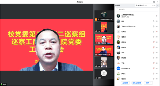 11月15日下午,校党委第二轮第二巡察组巡察太阳集团tyc151cc党委工作动员会议通过腾讯会议在线上顺利召开。校党委常委、纪委书记、监察专员、巡察工作领导小组副组长卢平,校党委副书记张永德,校纪委副书记、巡察办主任李正斌,第二巡察组全体成员,太阳集团tyc151cc党委领导班子成员参加本次动员会,学院内设机构负责人和教工党支部书记、师生代表、民主党派教师代表列席会议。会议由学院党委书记高岳同志主持。
