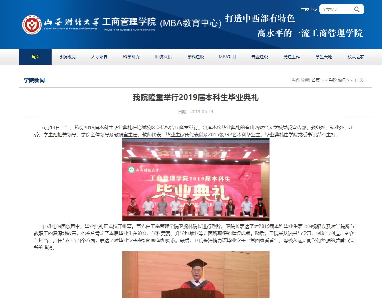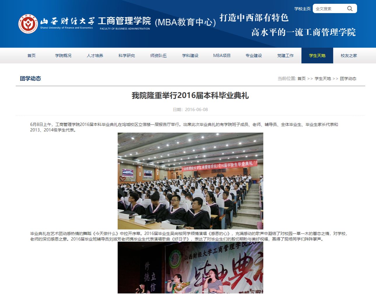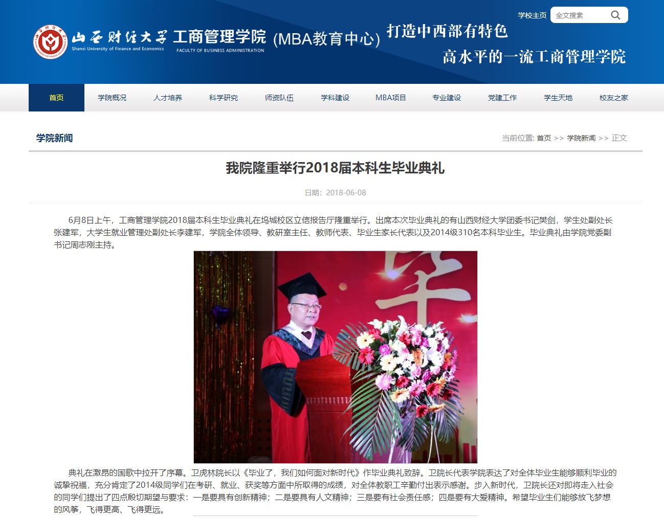 会上,本科毕业生代表尉悦同学讲述了不平凡的平凡故事,学硕研究生代表谢佳同学表达了对母校的怀念和感恩,MBA毕业生代表郭素丽同学用诙谐幽默的语言讲述了他们的山财情。