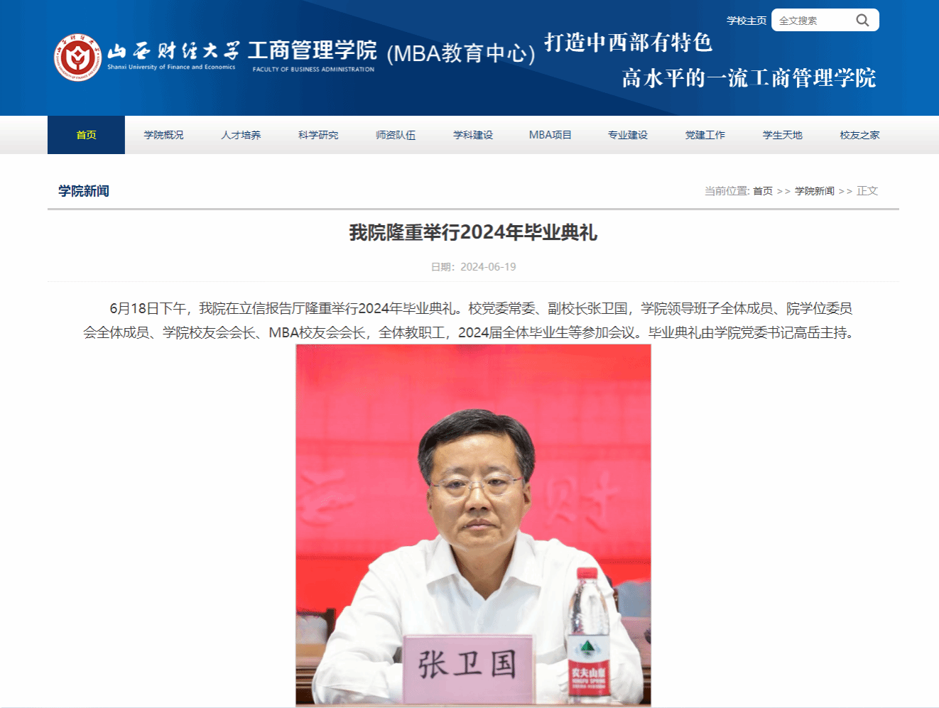 典礼上对本科、学硕以及MBA优秀毕业生进行了表彰,张卫国副校长为博士毕业生颁发了毕业证书,主席台全体领导和嘉宾为研究生、本科生颁发了毕业证书。