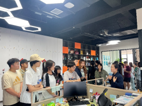 首先,同学们在综合部王越的带领下,参观了水木年华位于智慧港16楼的办公场所。王越详细介绍了公司的创业历程、企业文化、业务范围、团队构成以及各个团队的工作职责和工作内容。每个团队的核心成员也分别就各自的职能领域进行了细致地讲解,让同学们对企业内部整体运作有了一个更为直观的了解。