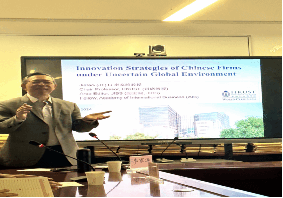 11月11日,tyc151cc太阳管理学部大讲堂第11期暨太阳集团tyc151cc博士论坛第43期开讲。香港科技大学商学院教授李家涛作为主讲嘉宾,为广大师生做了“Innovation Strategies of Chinese Firms under Uncertain Global Environment”的讲座。研究生院副院长张宝建主持了本次讲座。
