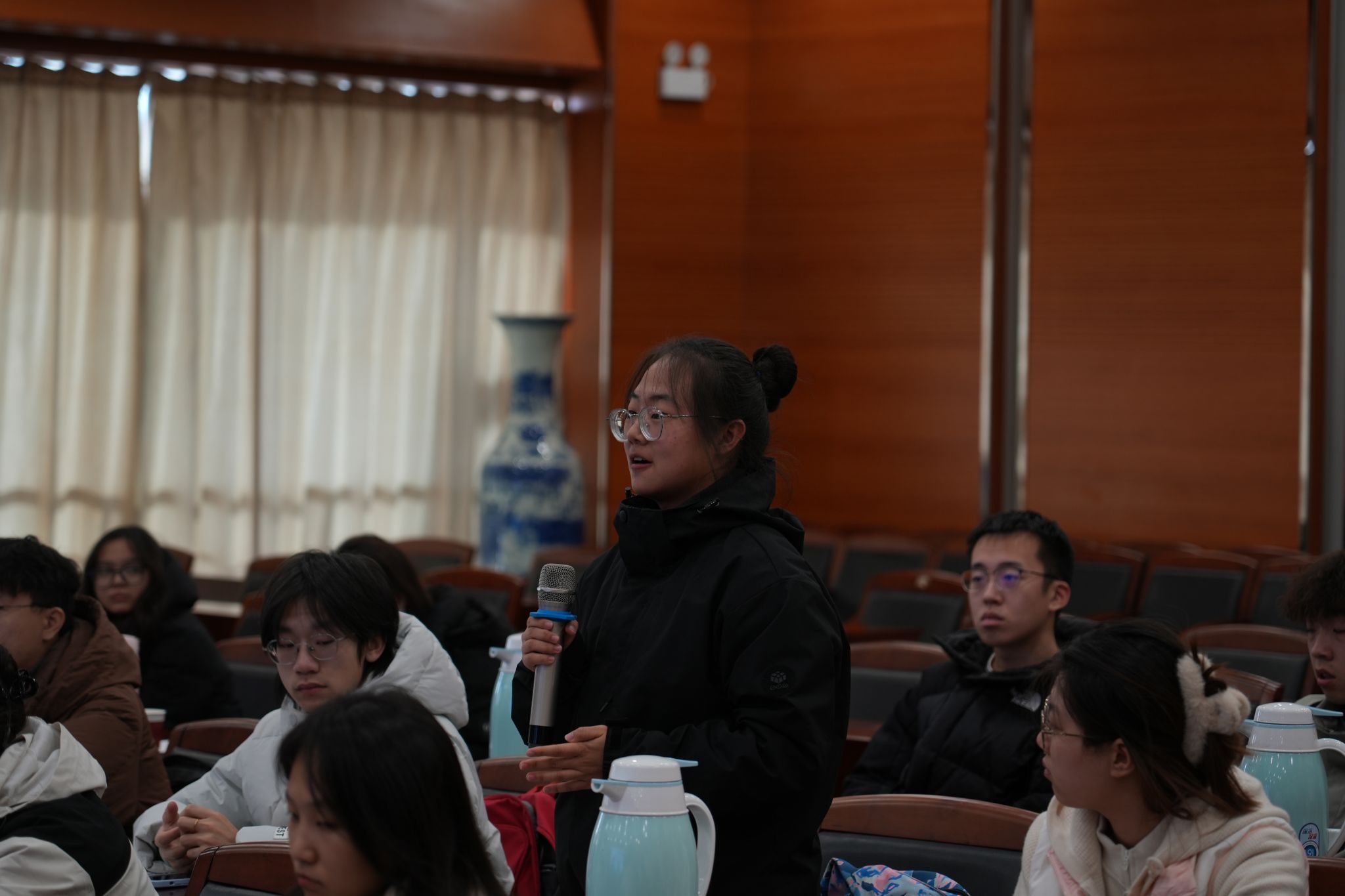 互动环节,同学们就自己所关心的问题积极提问,话题涵盖人才招聘、绩效管理、组织文化、员工激励、战略执行、风险防范等多个方面。李总、苏总以及相关部门负责人结合自己的企业经营管理经验,对同学们的问题进行了深入、详尽的解答。这些交流互动不仅激发了学生们的思考,也强化了他们对国有企业的了解。
