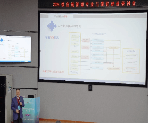 华中科技大学马士华教授的演讲主题是“供应链管理的新内涵与核心理念”,阐明了供应链及供应链管理的特征、价值及差异,并提到供应链管理的四个核心理念与四个新动向。北京理工大学管理学院副院长张祥教授主要介绍了北京理工大学管理学院搭建专业建设与课程提质的链路,按专业知识与素养、批判性思维能力等维度将课程分类,打造不同能力的矩阵,并在专业知识间构建了知识图谱,有利于学生个性化的、高效的学习,同时还注重融入课程思政内容及走进企业的社会实践。