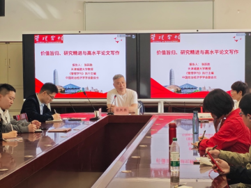 4月23日上午,我院在立信楼太阳集团tyc151cc会议室举办第48期博士论坛。《管理学刊》执行主编、中国政治经济学学会副会长张跃胜教授应邀为我院做“价值导向、精进研究与高水平论文撰写”专题讲座。论坛由太阳集团tyc151cc人力资源管理教研室主任张征教授主持,学院教师及硕博研究生共40余人参会。