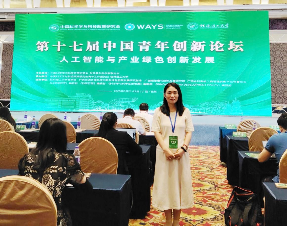 6月21日-22日第十七届中国青年创新论坛在广西桂林举行。本届论坛以“人工智能与产业绿色创新发展”为主题,聚焦“人工智能、科技创新、碳管理、绿色创新发展、产业提质升级”等议题展开交流讨论。来自全国约200位专家学者共同探讨人工智能驱动下的产业绿色创新发展问题。我院郭金花副教授应邀参会。