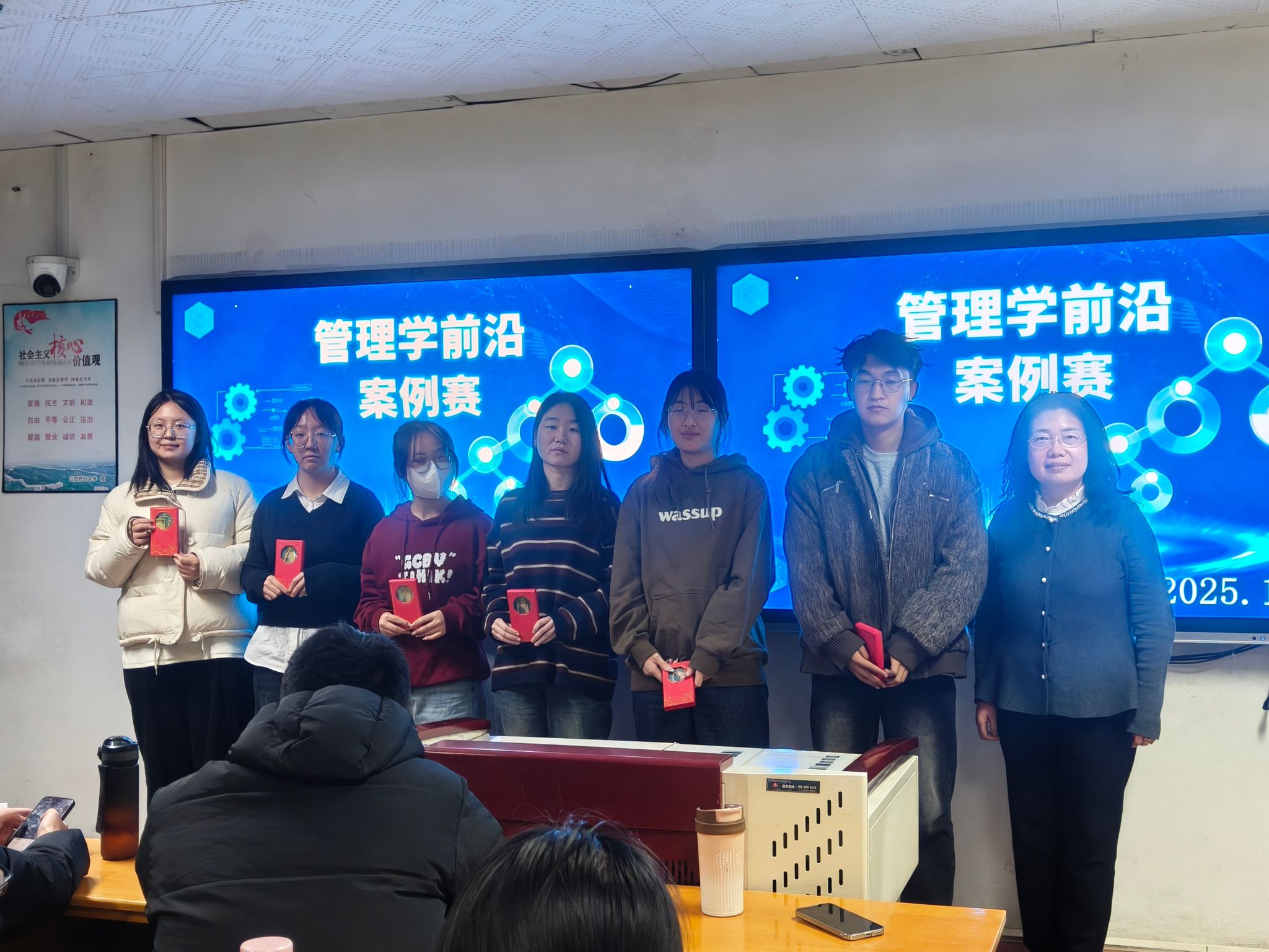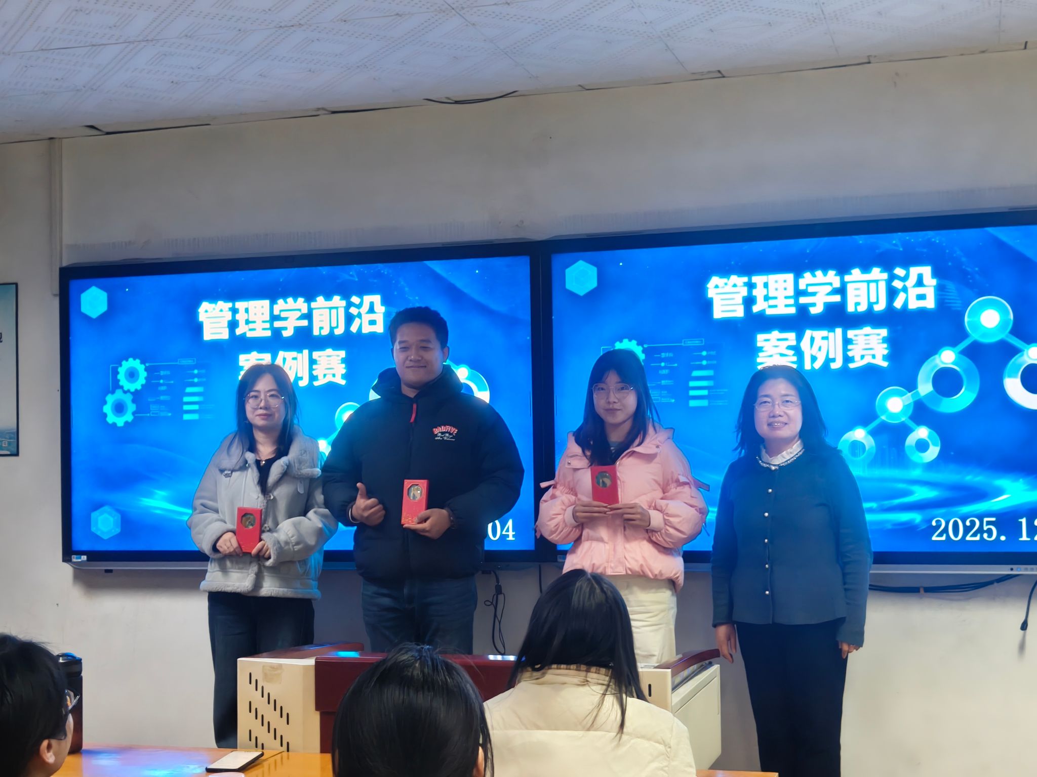 12月4日,以“聚焦三晋本土企业,智解管理发展难题”为主题的《研究生管理学前沿》课程案例赛在修德楼707教室成功举办。本次比赛由课程组老师担任评委,58名2025级会计学、财务管理、企业管理等管理类专业的硕士研究生组成九支参赛队伍,聚焦山西本土企业发展实践,梳理样本企业发展历程、深挖经营管理痛点、提出创新解决方案,旨在通过案例分析与现场展示,检验学生对管理学理论的理解与应用能力。比赛分为赛前准备、案例展示、小组互评与推荐、总结点评四个环节。