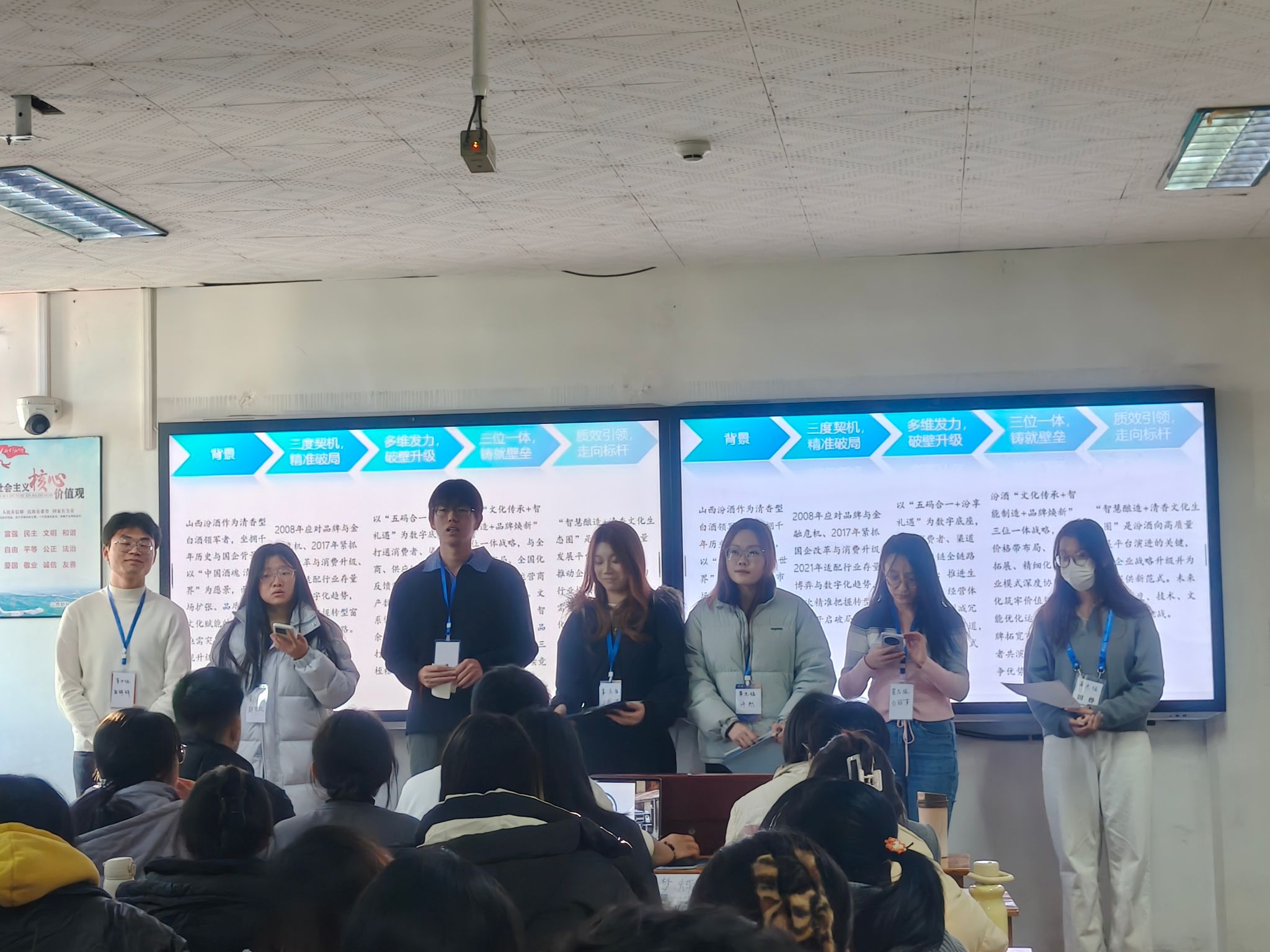 经过激烈角逐,第六组(成员有:魏佳丽、李家成、宗玥戎、武晶、李雨桐、尤彦茹)凭借对山西美特好的透彻分析、精准的痛点定位及可落地的创新方案,脱颖而出斩获冠军;梁嘉鑫、田烨、车茜琳、戎书娇四名同学因在案例调研、逻辑思辨、方案设计及现场答辩中的突出表现,获评“优秀选手”称号。