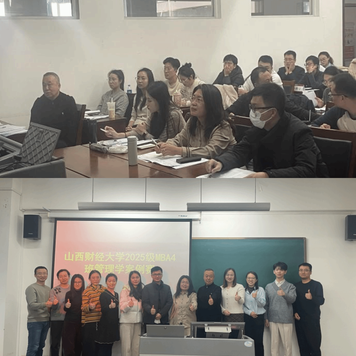 赛事特别组建了专业评审团,由管理学课程组教师与企业资深嘉宾组成,既保障了评审的专业学术高度,又融入了前沿的行业实践视角;各班班主任与班委全程高效统筹协调,为赛事有序推进筑牢服务根基;全体 MBA 学子热情投入、全情参与,共同为赛事添注了强劲活力。