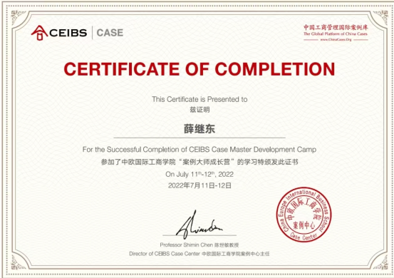 7月11-12日,令全国高校案例开发与教学爱好者期待已久的 “2022中欧案例大师成长营”在中欧国际工商学院上海校区成功举办。我院薛继东、王红芳两位老师线上参会,全国87所院校和机构的140多位教师在中欧教授的引领下,共同演绎了“线上+线下”融合课堂。