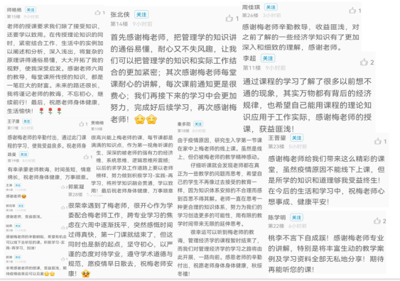 全班同学一致表示,梅老师专业水平高,授课用心,待人和善,非常荣幸能够学习梅老师的课程。梅老师作为tyc151cc太阳MBA教师中的一员,是一个缩影也是一个典型代表,用有限的教学时间启发同学们无限的思考,既开阔了视野,又提升了专业能力。大家对tyc151cc太阳MBA教师致以崇高的敬意,也表示将用最严谨的态度对待学业,遵守学术道德与规范,提升自身的专业能力与素养,决心以实际行动不辜负老师们的教诲,在不同岗位上书写新的篇章。(2022级MBA3班 郭紫凝)