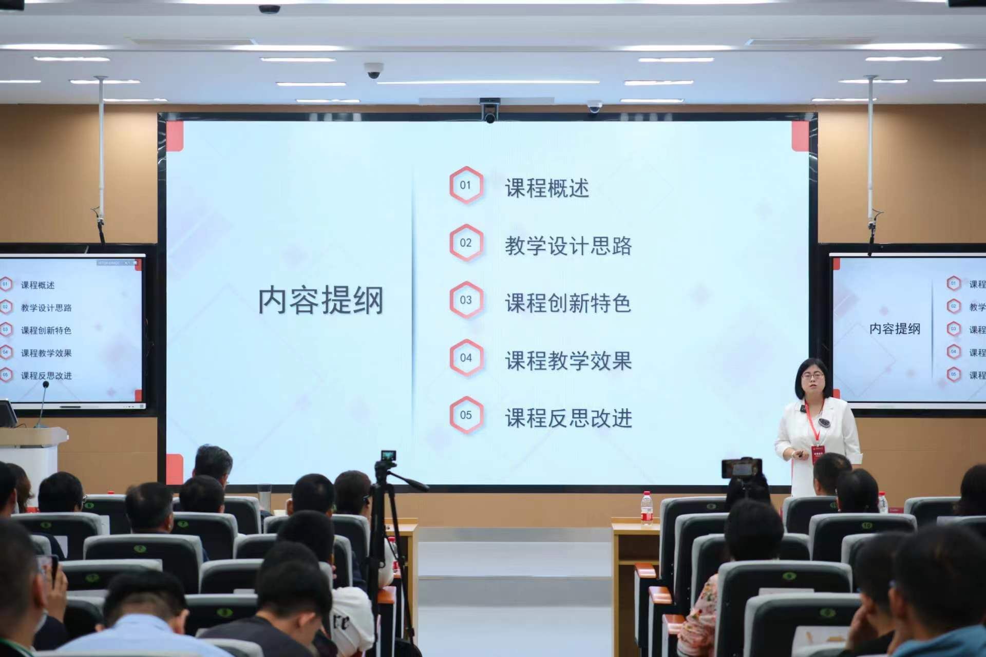 本次大赛按照同课异构模式进行。根据竞赛要求,王玉娟老师在赛前提交了“管理学”课程思政报告,在复赛和决赛现场进行了15分钟的说课汇报和5分钟的答辩,充分展示了我院“管理学”课程思政的教学目标、设计思路、教学模式、资源建设、创新特色和育人成效等况等,决赛现场,有近百名教师观摩。