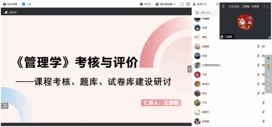 8月14日,我院《管理学》课程虚拟教研室组织召开审核评估背景下《管理学》课程考核与成绩评定专题研讨会议。太原科技大学、太原师范学院、山西工商学院等虚拟教研室成员,学院承担《管理学》课程的全体教师、管理原理及管理实务教研室有关老师共计20余人参加了本次线上会议。会议由管理学课程虚拟教研室常务负责人马燕翔老师主持。