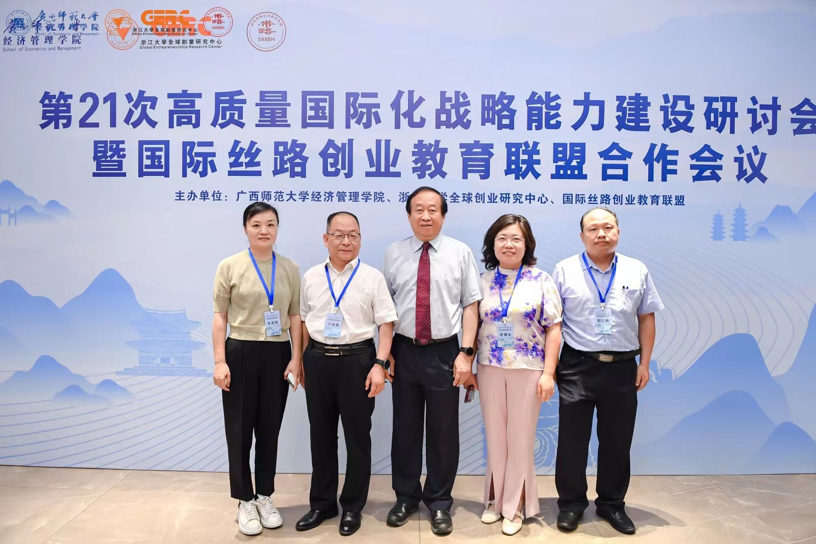 6月25日,由广西师范大学经济管理学院、浙江大学全球创业研究中心、国际丝路创业教育联盟联合举办的第21次高质量国际化战略能力建设研讨会暨国际丝路创业教育联盟合作会议在桂林召开。来自30余所高校的70余位MBA教育主管负责人参加了会议。会议由浙江大学人文社会科学资深教授、浙江省特级专家、浙江大学全球创业研究中心主任王重鸣主持,我院院长卫虎林、副院长薛继东以及样板专业负责人张莉艳、刘江鹏一行四人参加了会议。
