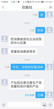 2、视频学习掌握知识点。八点到九点五十分,学生带着问题和知识点观看营销管理导论部分视频,完成第一、第二单元测试内容。我提醒大家观看视频不要拖快,已设功能,否则没有成绩。十点十分到十点五十分视频结束后根据本章节的知识点发起三个抢答问题和两个选人问题,选人设置的问题是关于视频内容的小讨论题,点到的同学提出自己的思路和见解。由于在通知里已经详细告知使用方法,大部分学生对基本知识点的把握比较扎实。