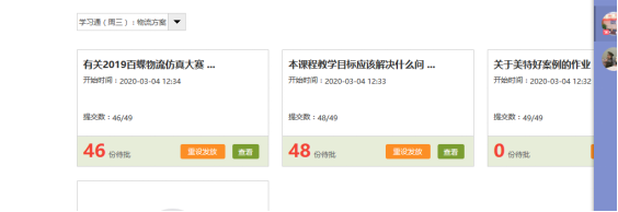 (4)作业完成情况,非常不错,学生参与度很高。到放学之时,3到份作业基本上全部做完,2道讨论题还有部分同学没有做完。今天晚上准备将作业,讨论提交通道关闭。