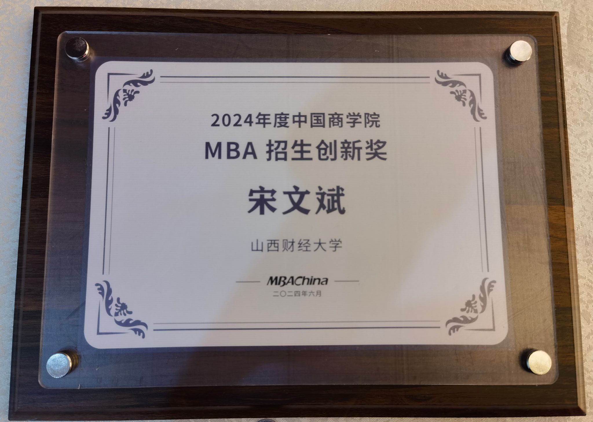 6月12日,在新疆乌鲁木齐市举办的第十三届中国商学院招生经验分享暨培养创新论坛上,我校MBA荣获2024年度中国商学院招生创新奖。