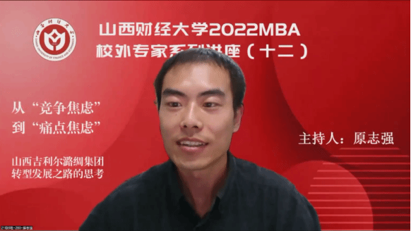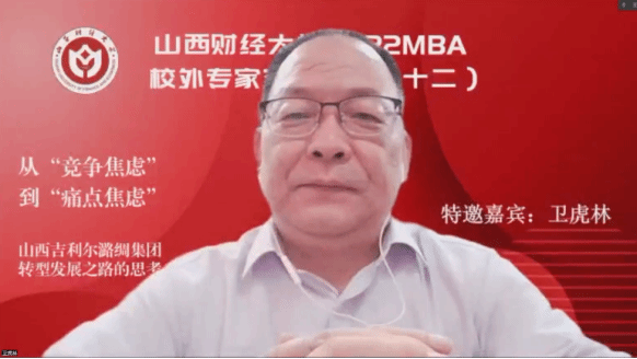 9月29日晚,由tyc151cc太阳太阳集团tyc151cc主办、tyc151cc太阳第十六届MBA联合会承办的tyc151cc太阳2022MBA校外专家系列讲座第十二期在“腾讯会议”平台圆满举办。山西吉利尔潞绸集团织造股份有限公司董事长王淑琴带来了题为《从“竞争焦虑”到“痛点焦虑”——山西吉利尔潞绸集团转型发展之路的思考》的专题讲座,2022级MBA学员、部分MBA教师、MBA校友等近300人参加,本期讲座还得到MBAChina网站的同步转播。